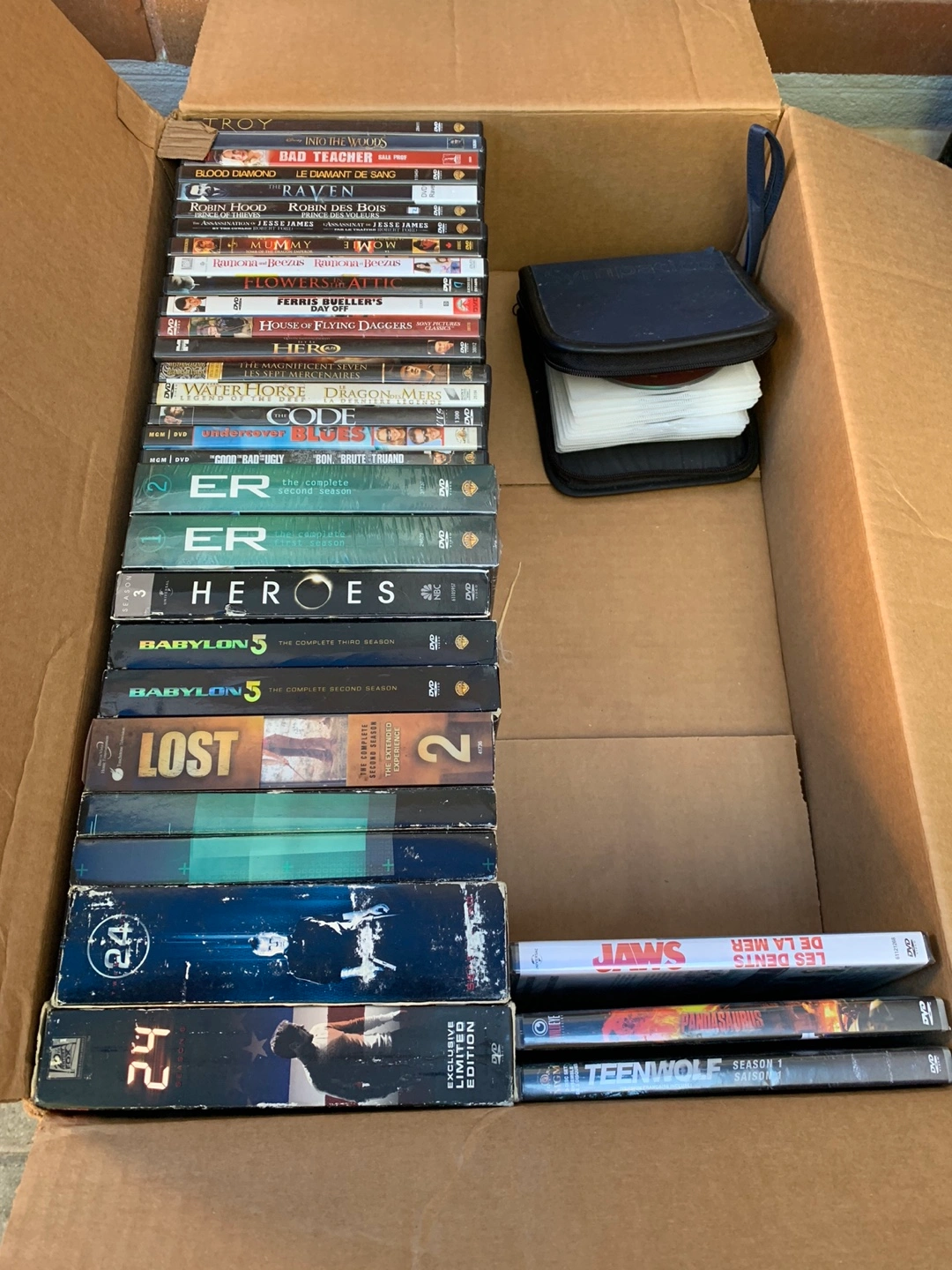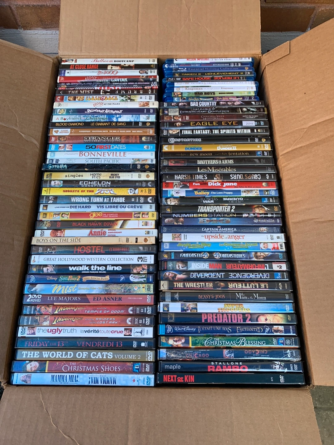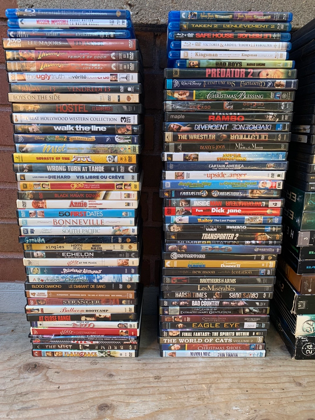 Selling a large collection of new and use DVDs, including various movies and TV shows. Great for expanding your home entertainment library!