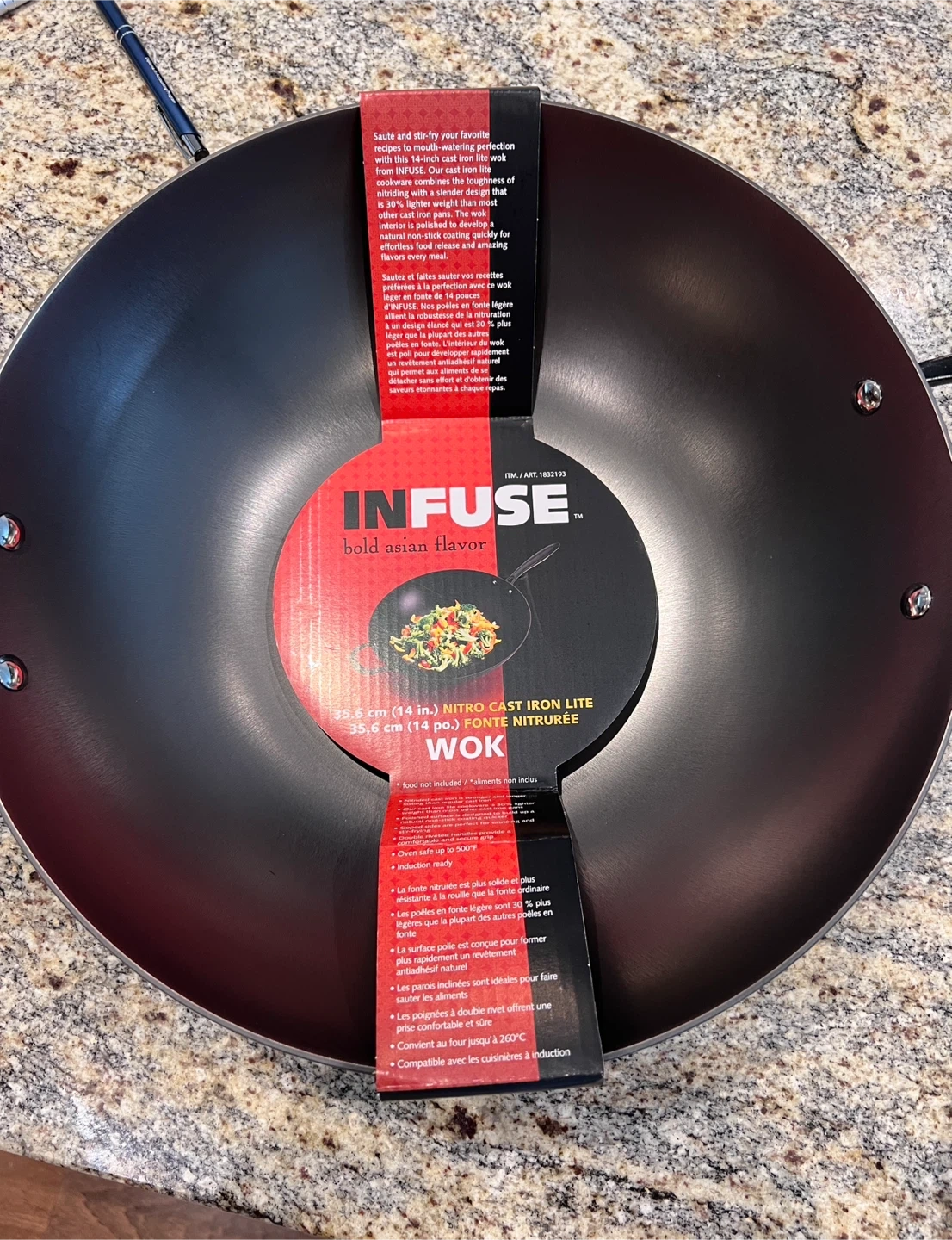 I'm selling a brand new Infuse 35.6 cm (14 in.) Nitro Cast Iron Lite Wok! It's still in its original packaging.