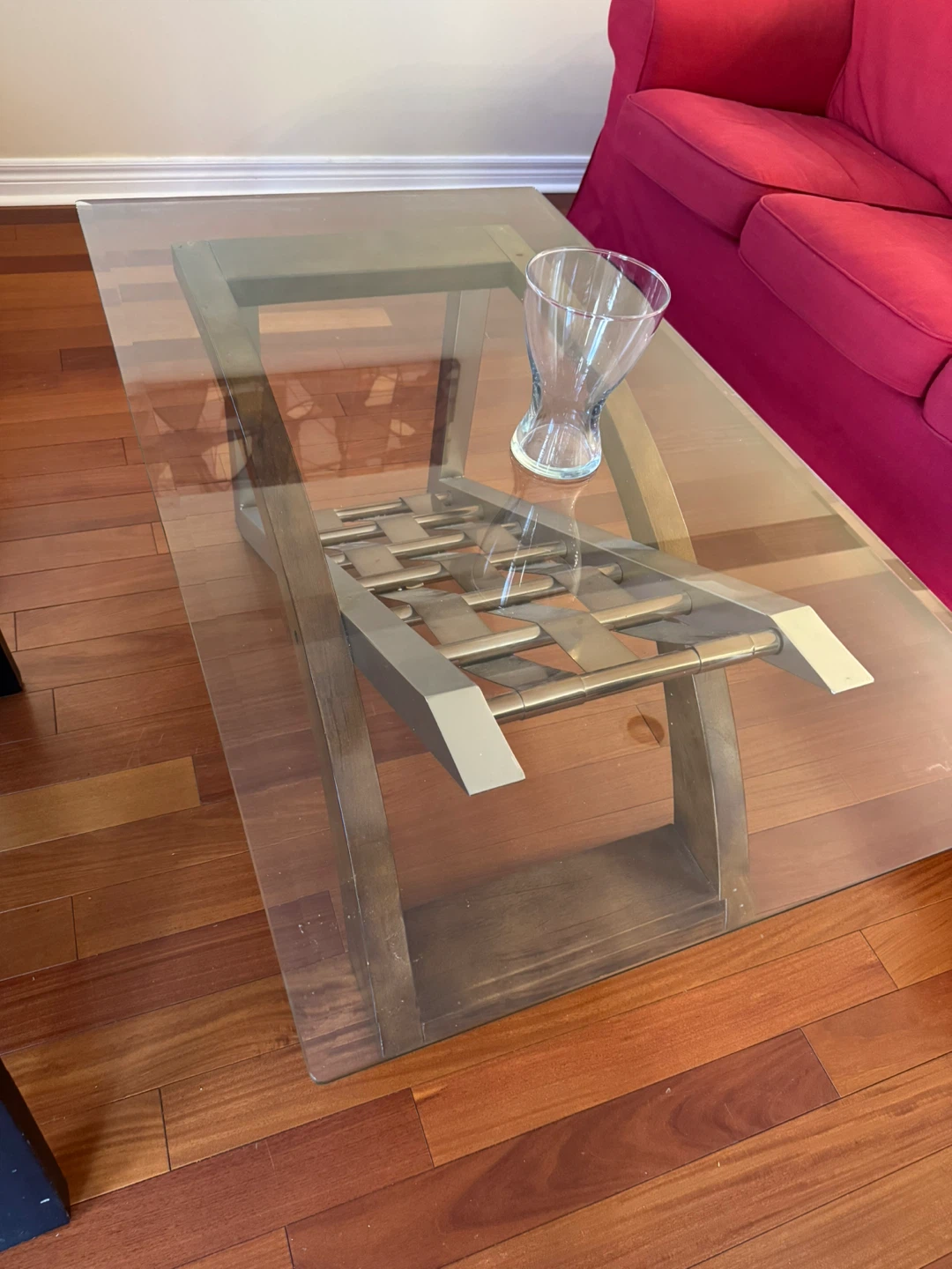 Selling a glass top coffee table. It's in great shape and would look great in any living room. The base is a neutral colour and the glass is clear. A stylish addition to your home!