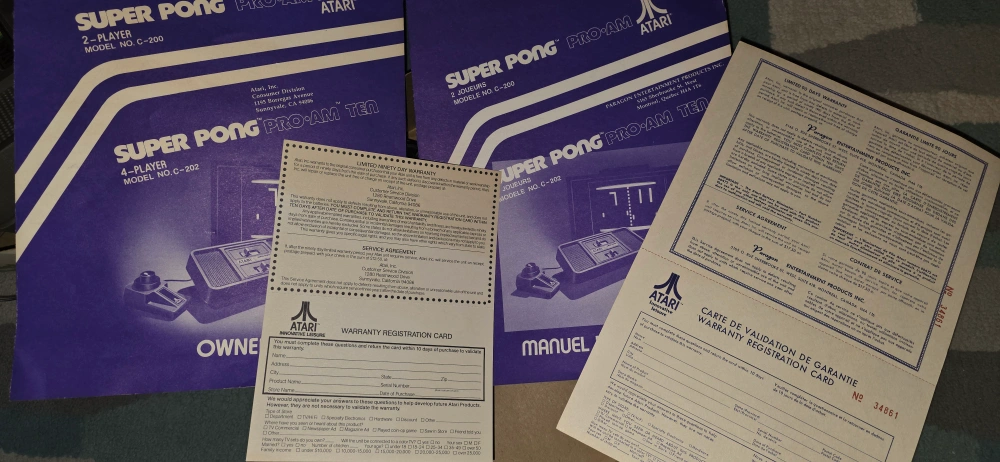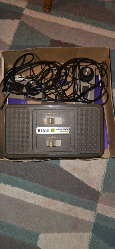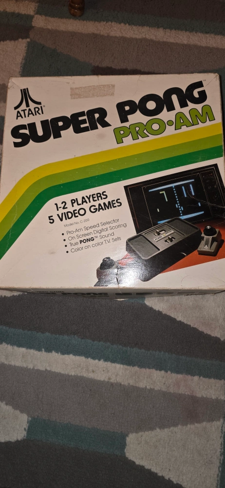 Selling a vintage Atari Super Pong Pro-Am console! It comes with the original box and manuals. A cool piece of gaming history!