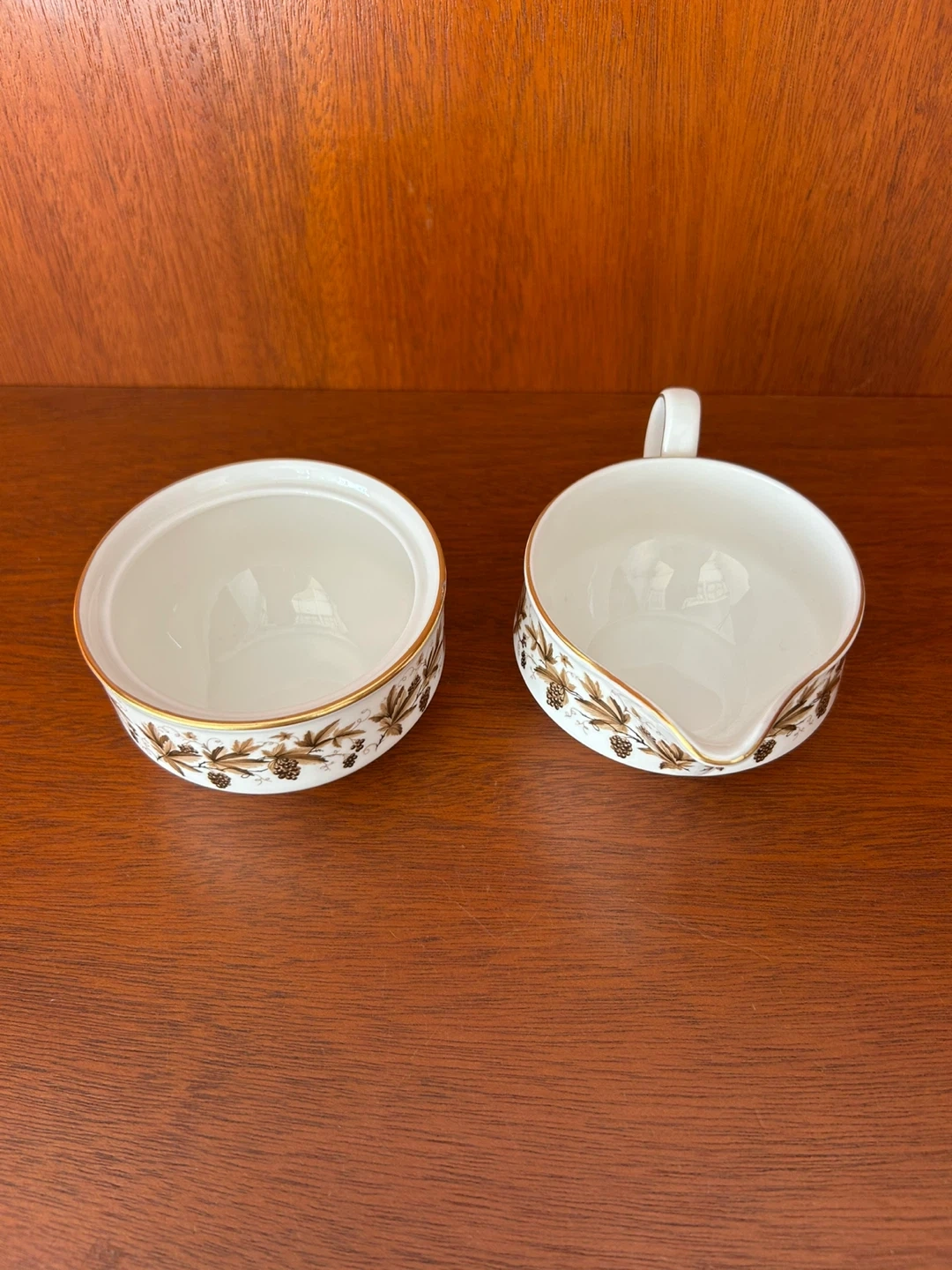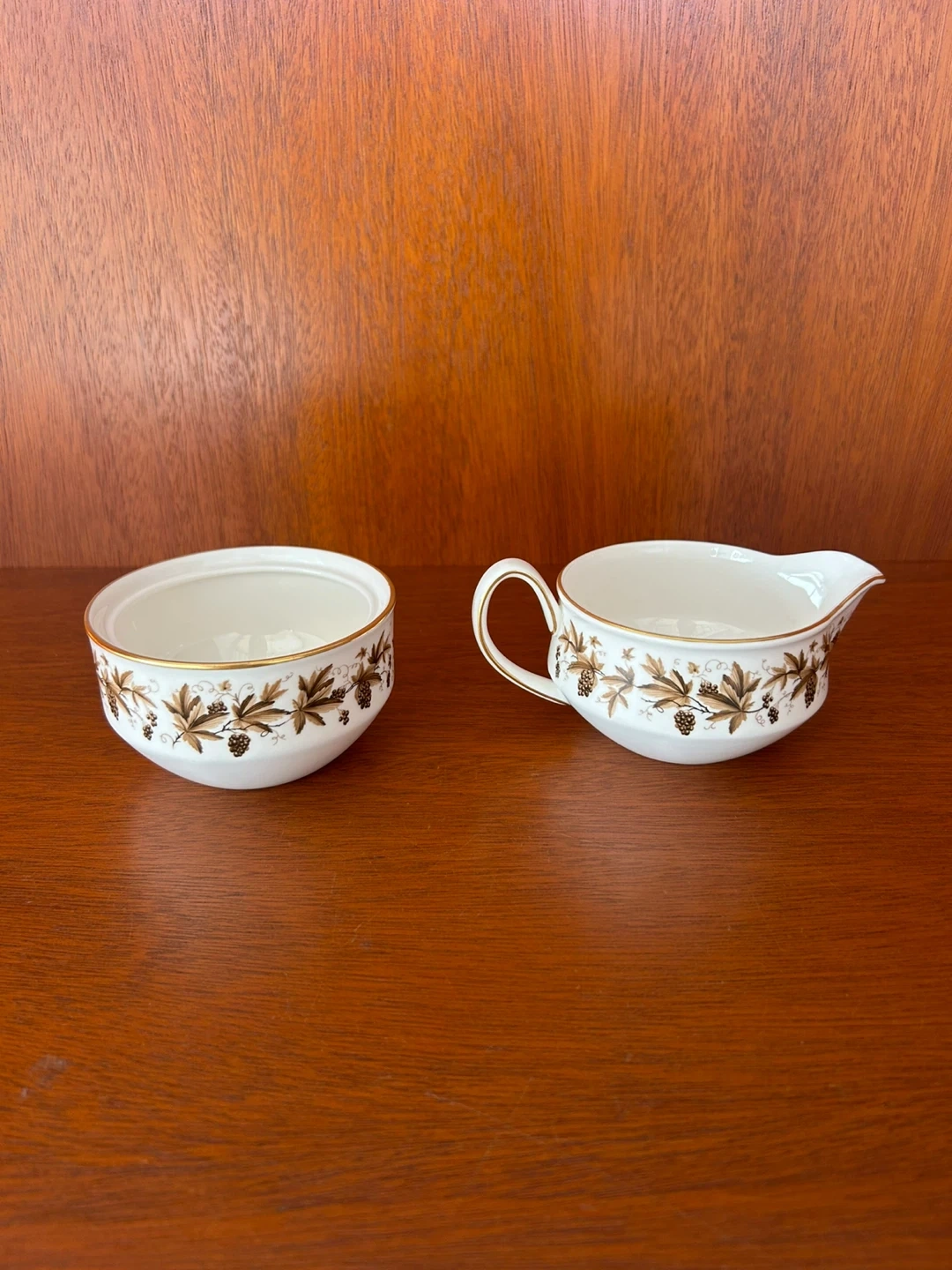 Wedgwood Autumn Vine bone china creamer and sugar bowl.