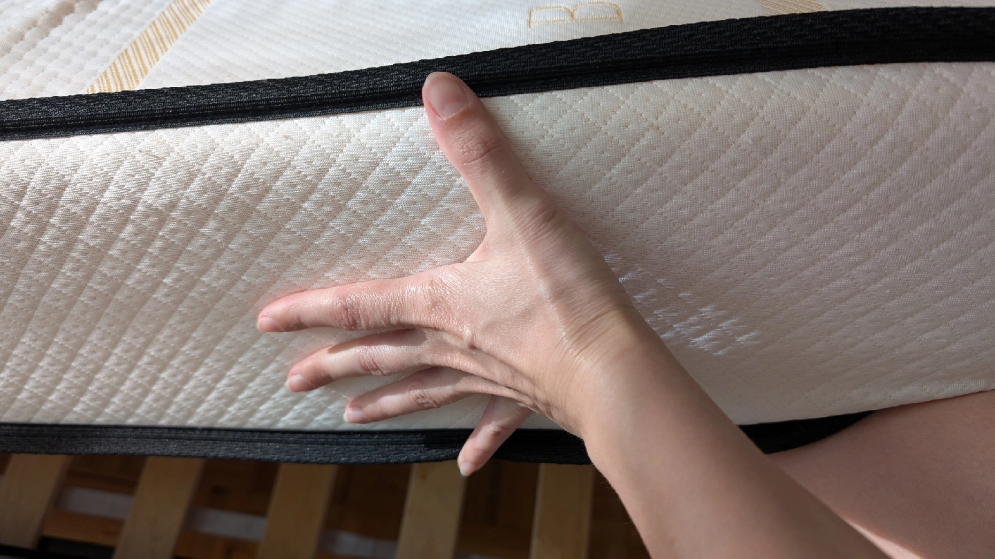 The bedframe comes with a gently used bamboo mattress. Clean, pet and smoke free