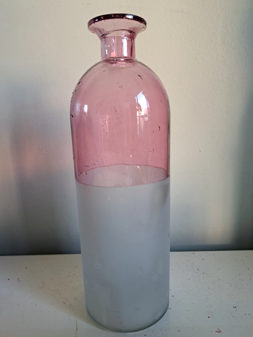 Selling a lovely pink and frosted glass vase! It would look great with flowers or as a decorative piece on its own. The frosted bottom gives it a unique touch!