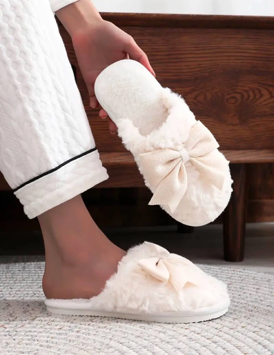 1000+✨ Decluttering ✨ Affordable prices, quick pick up. 📍 St. George / Sheppard West / Victoria Park ✅Description: New item with no issues Cozy and comfortable women's slippers. Features a fluffy white exterior and a cute beige bow detail. Open-toe mule style.