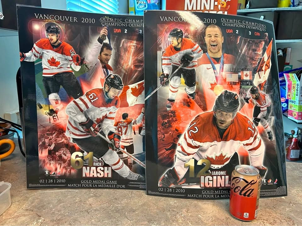 Two laminated posters of Team Canada Olympic win in 2010. Jarome Iginla and Rick Nash. Can is not included, just for sizing. Asking $10. Pickup in Brampton (Main and Vodden). Smoke free, cat friendly home. Cash at pick up. Check out my many other items. Willing to negotiate if you are interested in more then one item.