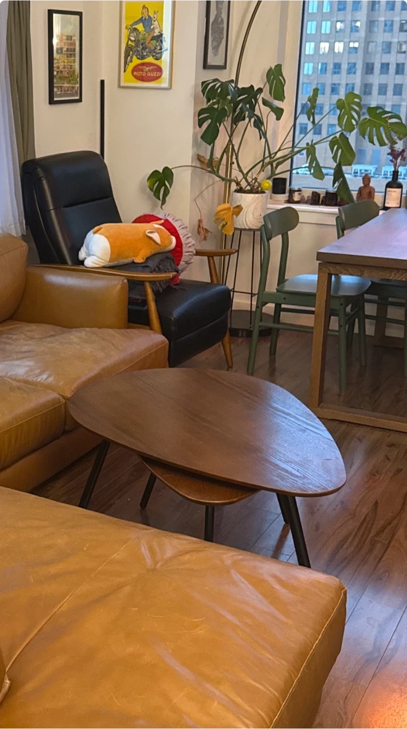 Selling a brown wooden coffee table. It's in good condition and would be a great addition to any living room - FYI. Only the large table is for sale. The small table underneath is not available- retail value was around 800$