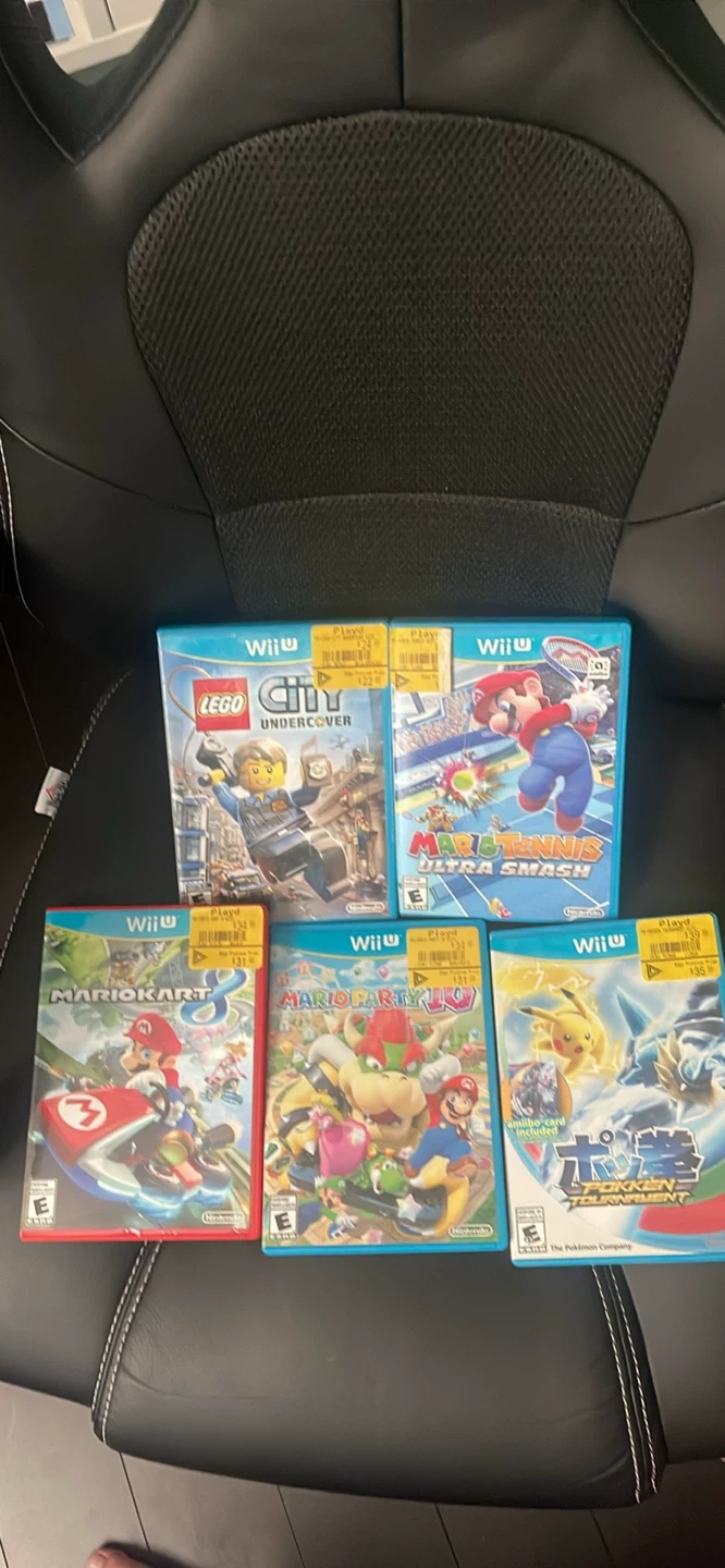 Selling a bundle of Wii U games for $90 or buy singles for $20 each. Mario Kart 8, Lego City Undercover, Mario Tennis Ultra Smash, Mario Party 10, and Pokken Tournament.