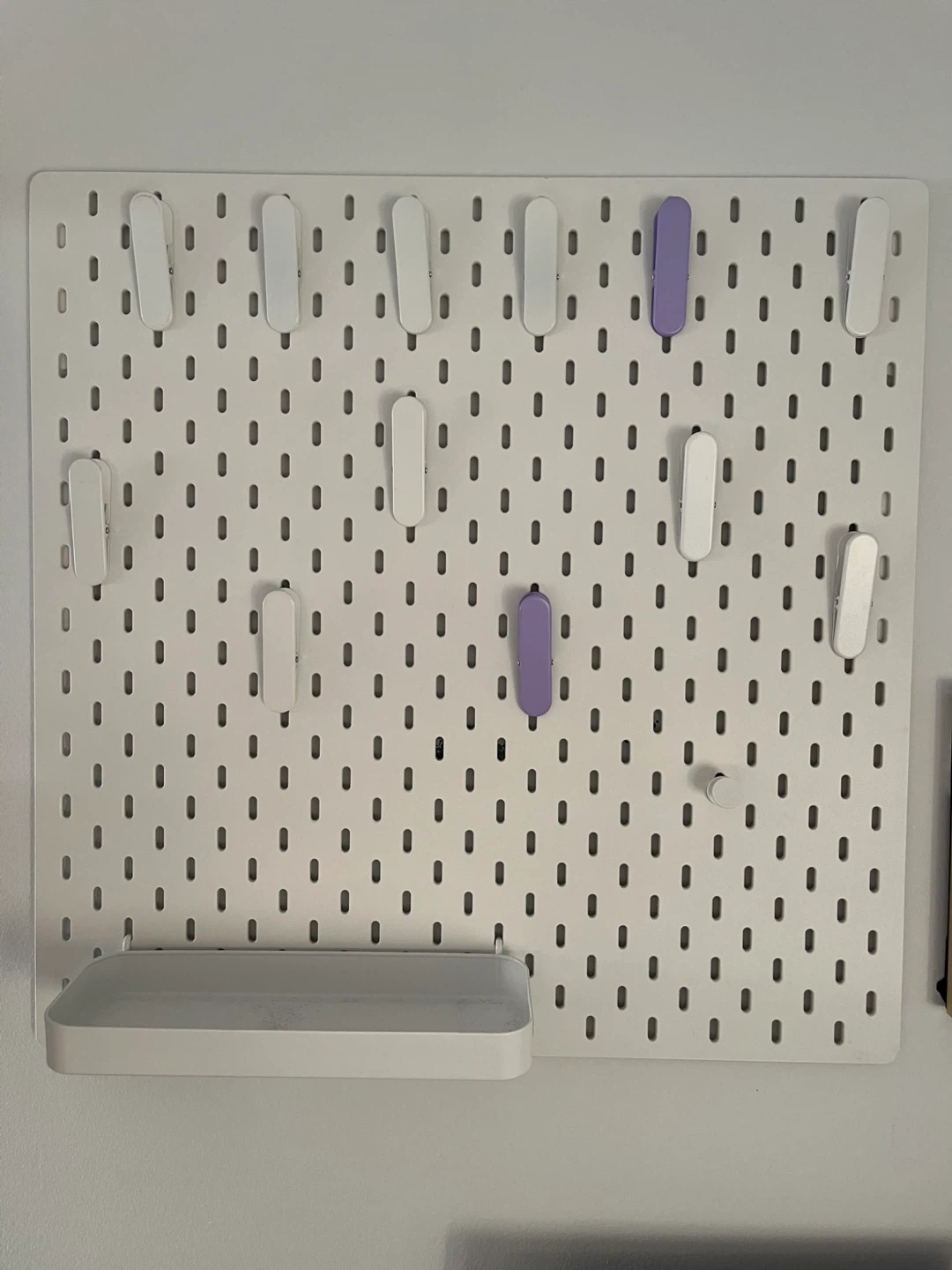Selling a set of IKEA SKÅDIS items in white! Includes the pegboard (56x56 cm / 22x22 "), shelf, 12 clips and 10 hooks. Perfect for organizing your space!