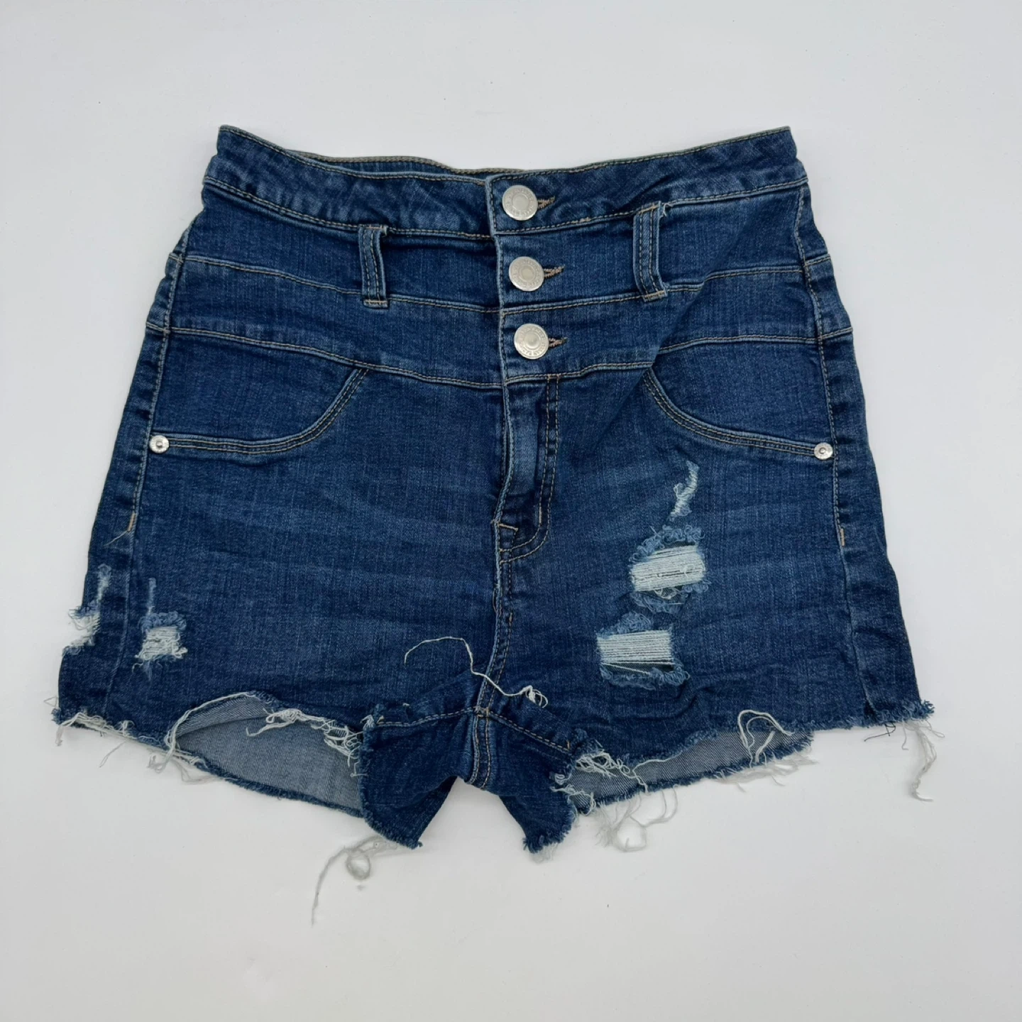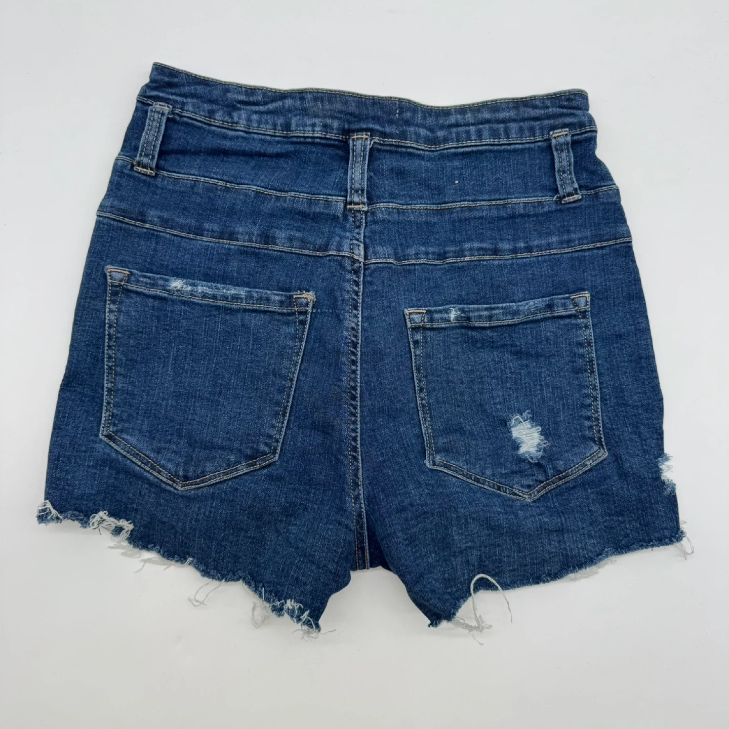 93Freshen up your summer look with these stylish U2B Urban Basics high rise distressed denim shorts. Featuring a trendy triple-button closure, frayed hem, and distressed details on the front and back, these shorts combine comfort with a fashionable edge. • Brand: U2B Urban Basics • Size: 5 (Women's) • Color: Dark Blue • Style: High Rise, Distressed, Frayed Hem • Condition: New, without tags • Details: Button-up front, 5-pocket style, casual and trendy look Perfect for casual outings, summer events, or pairing with your favorite tops and sneakers. Pickup in North york Delivery available for extra (CL)1285