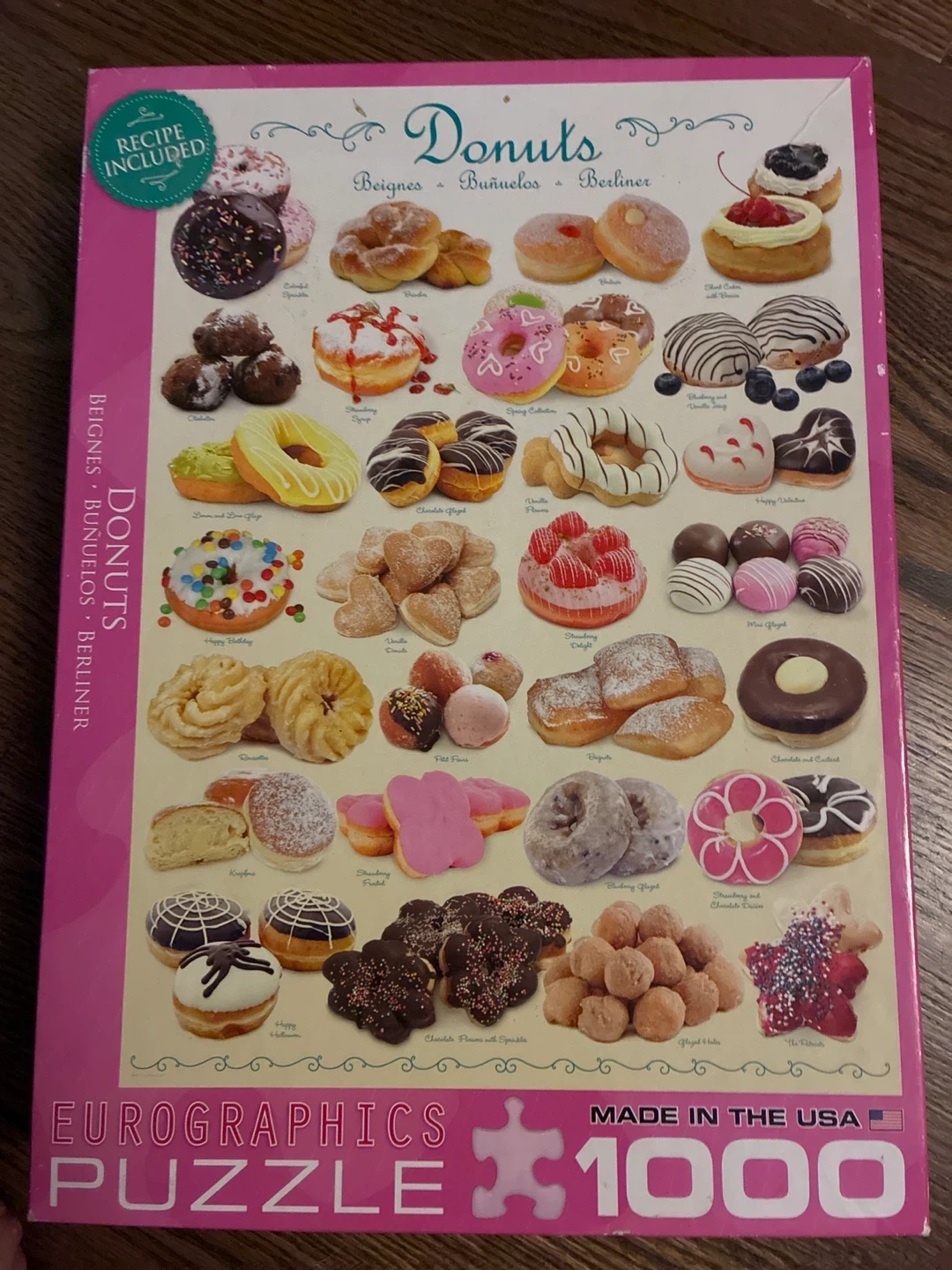 251Giving away this Eurographics 1000-piece puzzle featuring a variety of delicious donuts. It is in good condition but there will be a couple of missing pieces thanks to my cats.