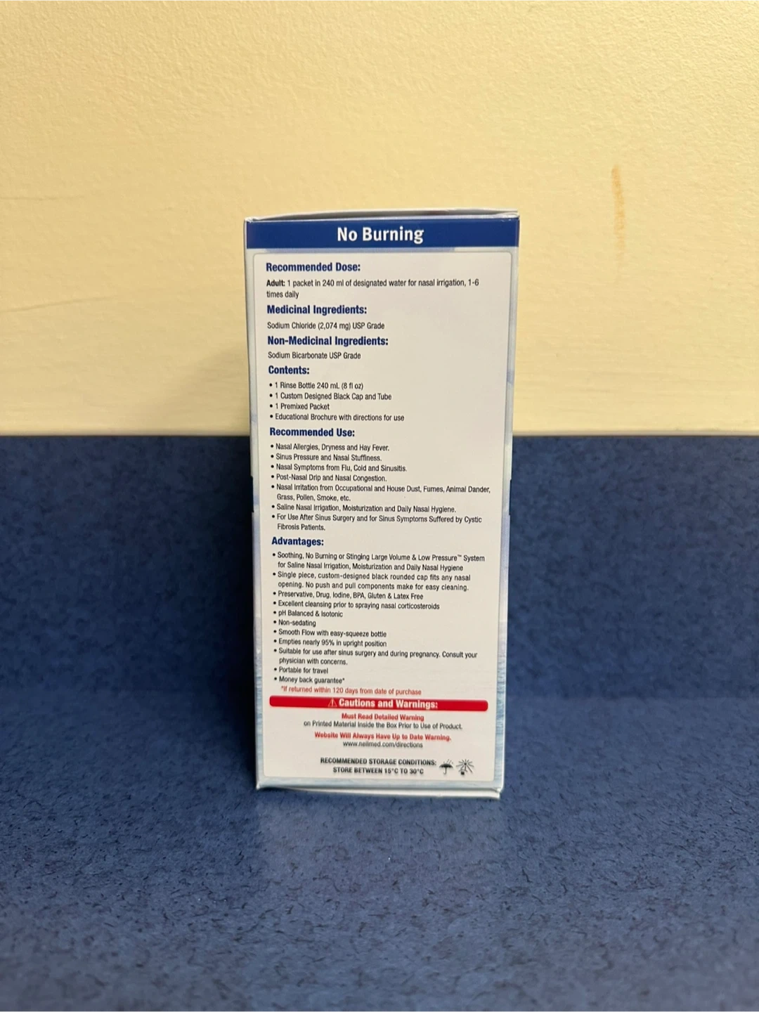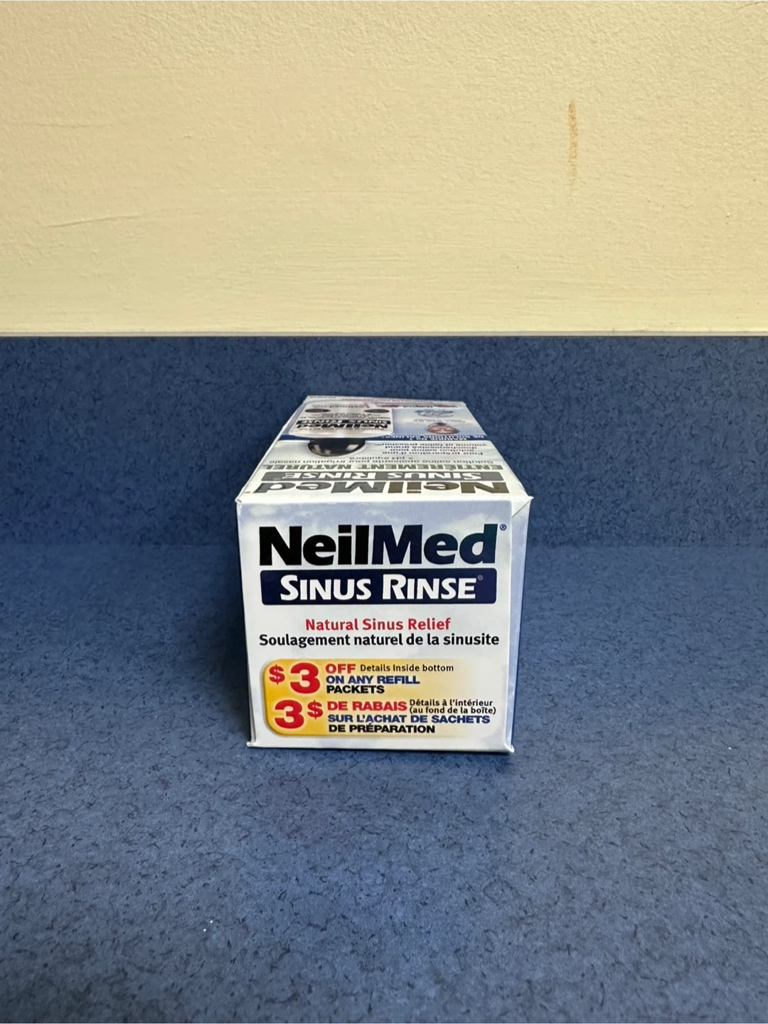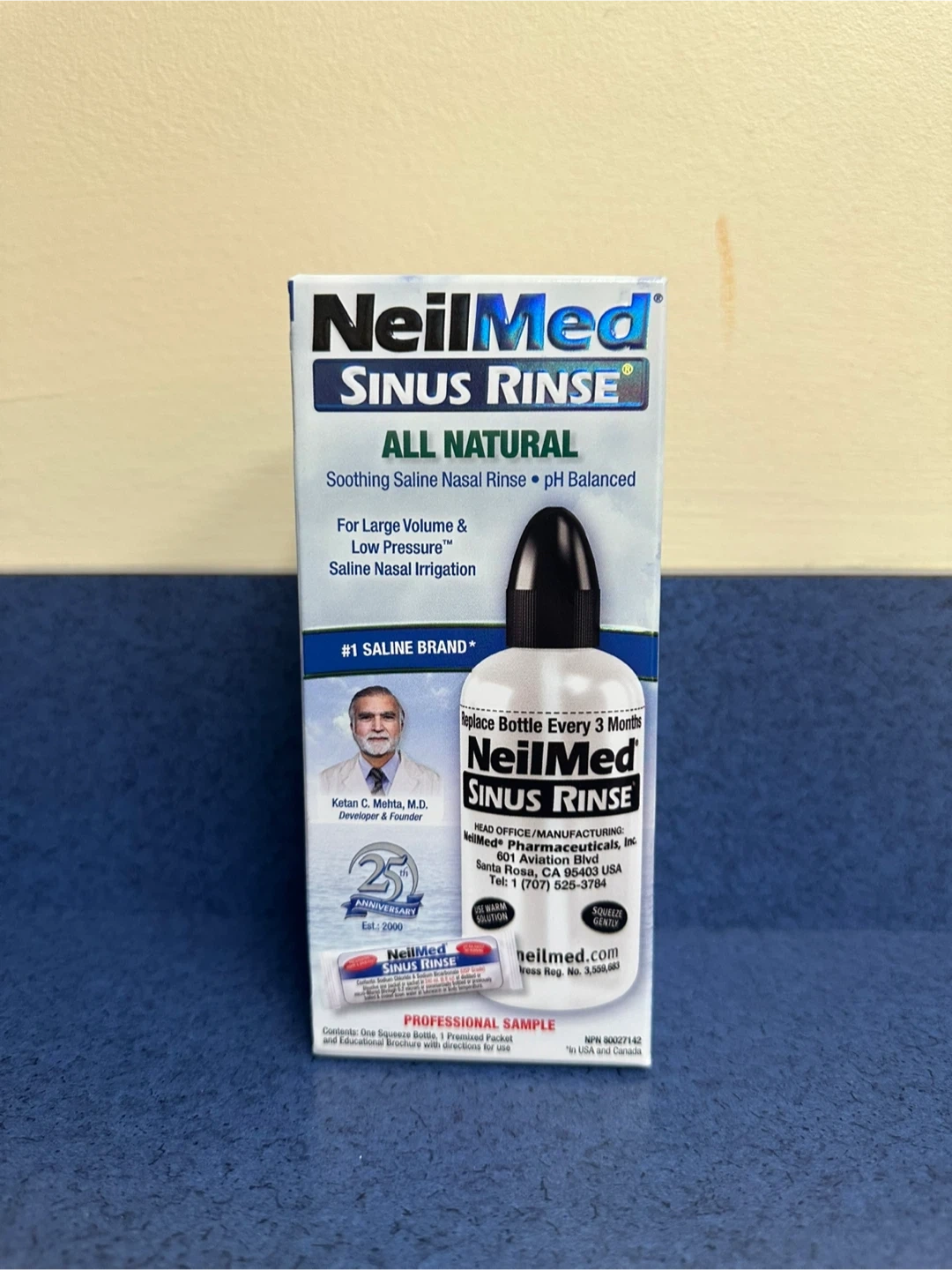 Selling a NeilMed Sinus Rinse kit. It's an all-natural soothing saline nasal rinse that is pH balanced. It's designed for large volume & low pressure saline nasal irrigation. Includes a rinse bottle, tube, and mixture packets with directions for use