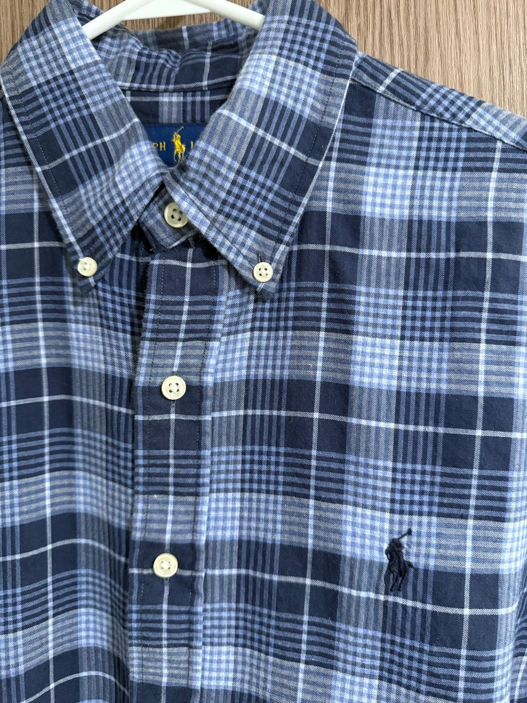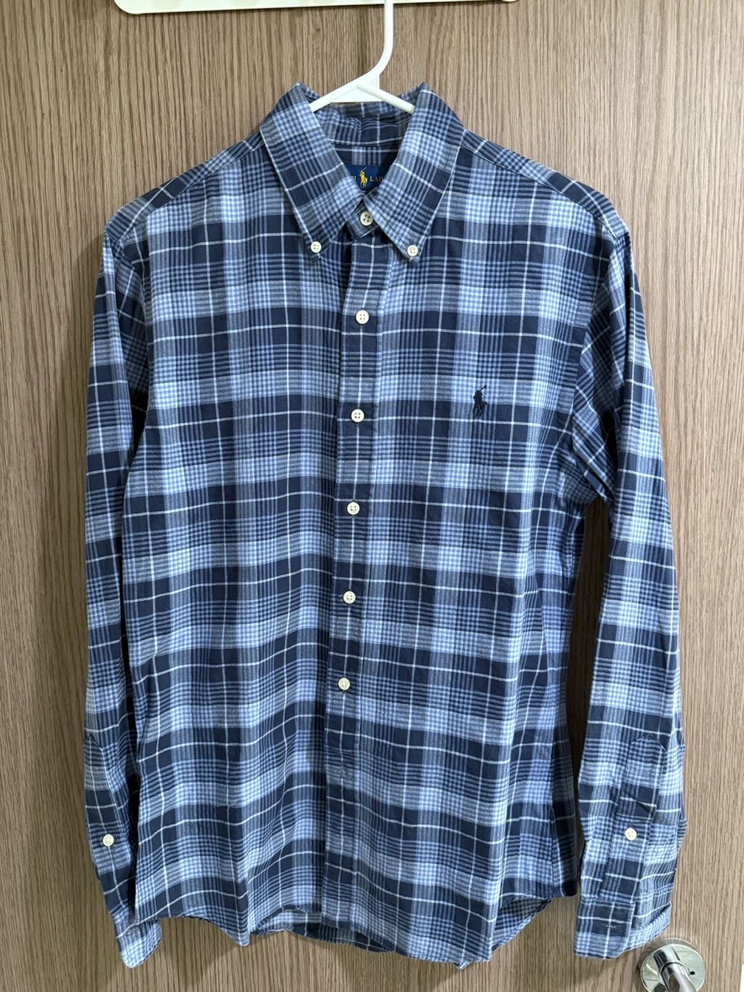 Ralph Lauren slim fit shirt in a blue plaid pattern. Size small. In great condition!