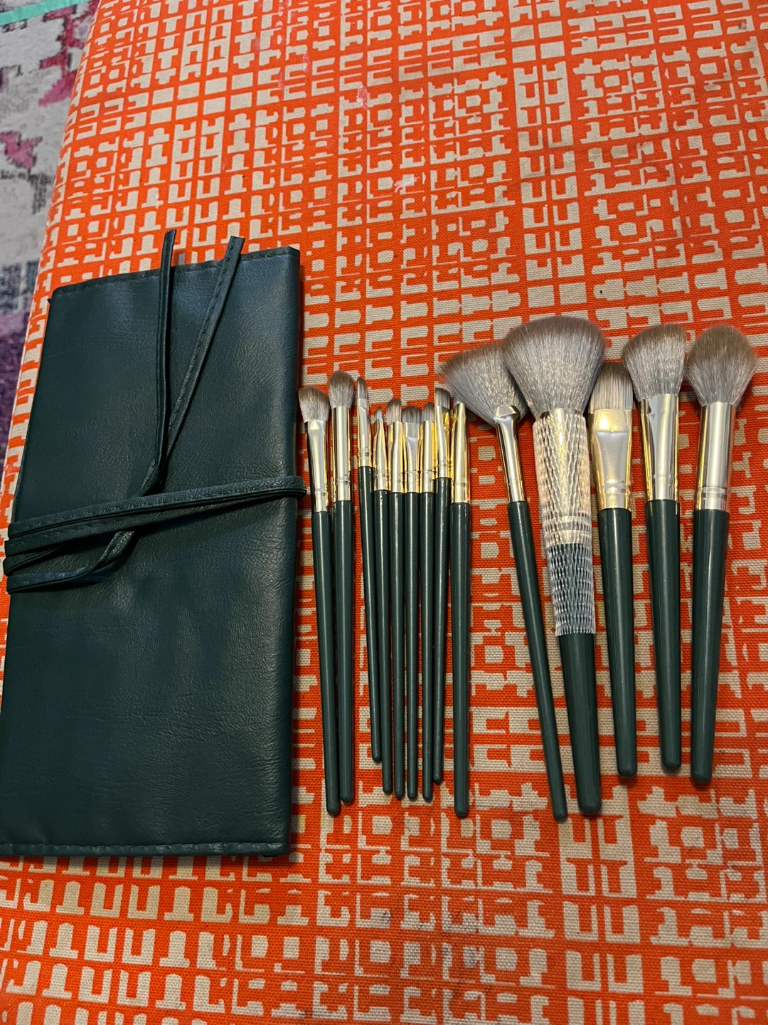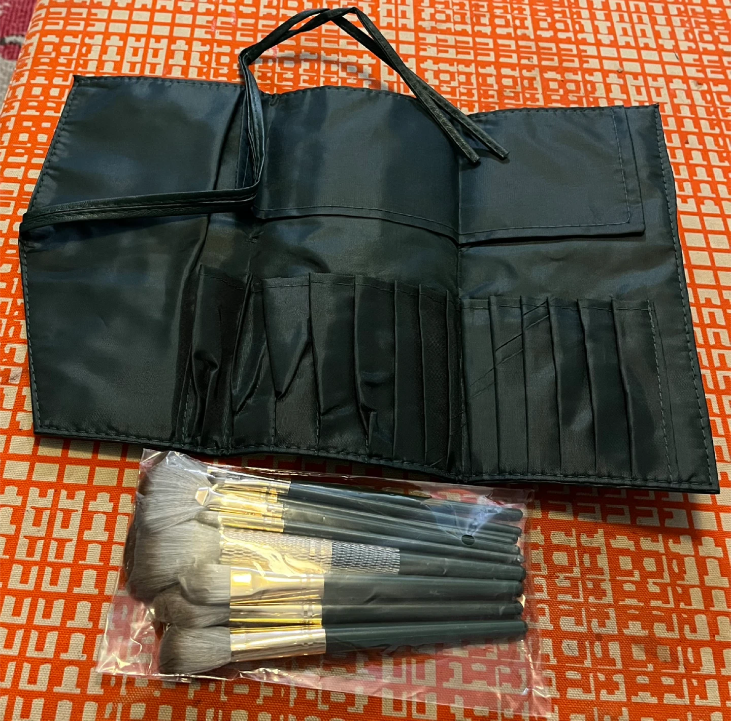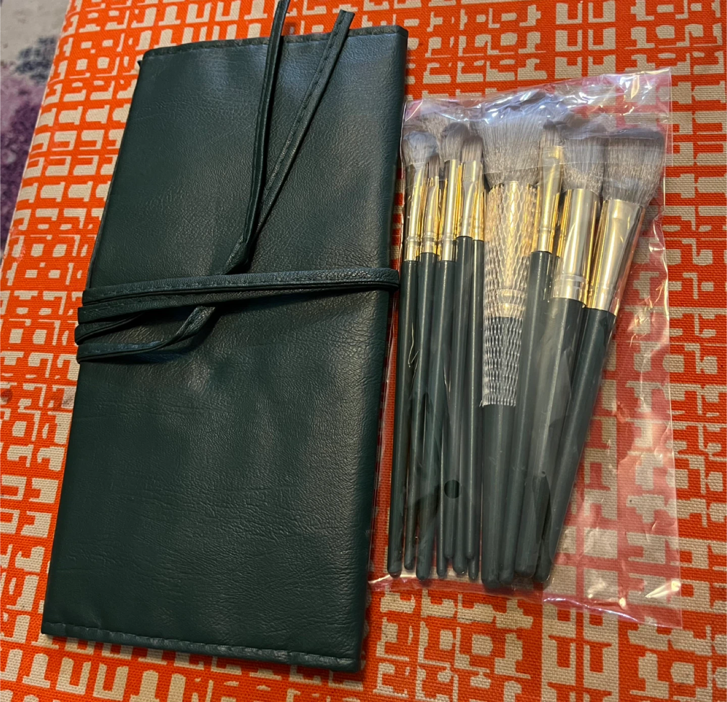 I'm selling a brand new makeup brush set that comes with a case! The brushes are still sealed in their original packaging, so they're in perfect condition