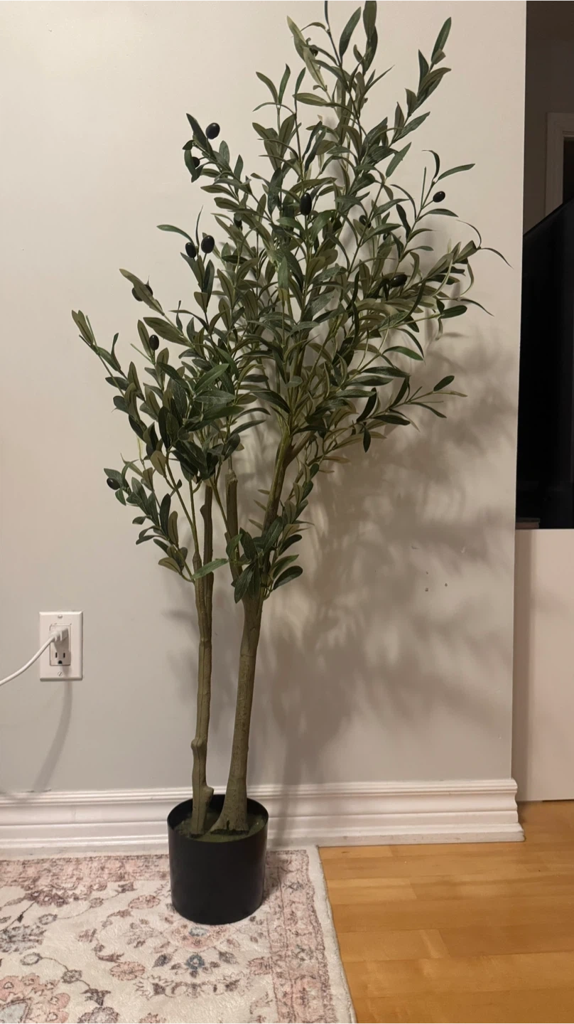 66Add a touch of Mediterranean charm to your home with this faux olive tree! It's perfect for adding a bit of greenery to any room without the hassle of maintenance. This artificial tree features realistic-looking leaves and olives, bringing a natural and fresh vibe to your space