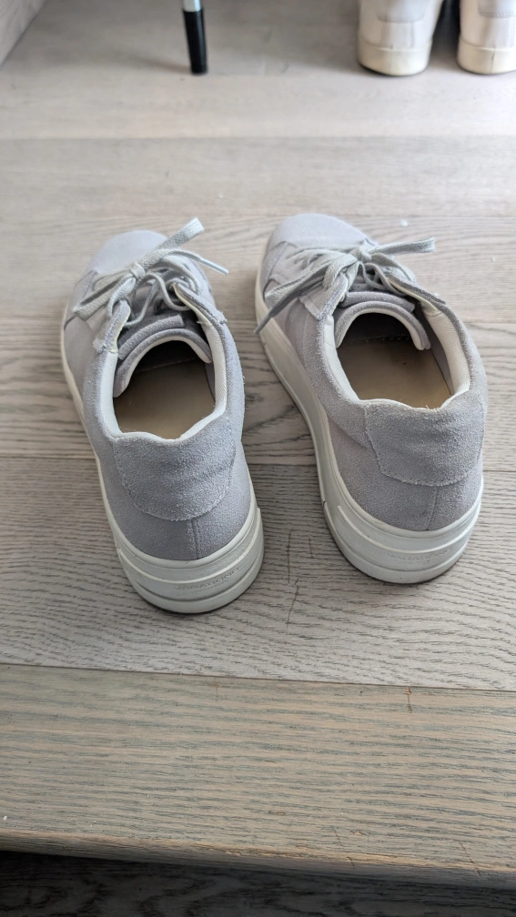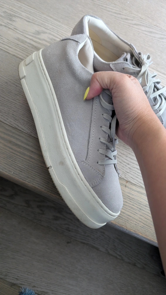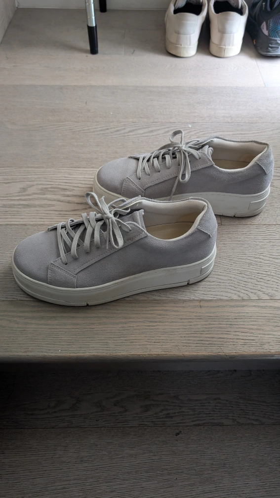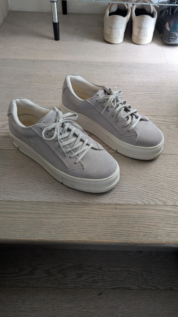 pair of Vagabond Shoemakers Judy platform sneakers! They're a stylish light grey suede with a comfortable sole. These shoes are perfect for everyday wear and are in excellent condition. Size US 7.5