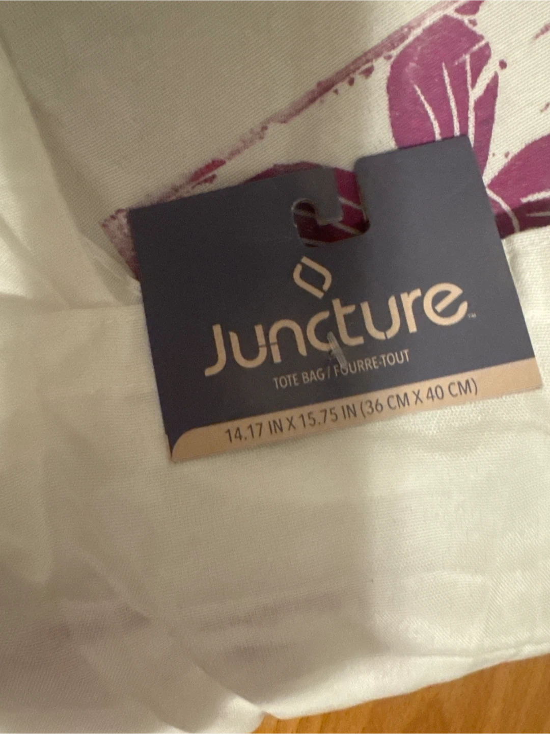 Here's a cute Juncture tote bag! It has a pretty floral design printed on it.