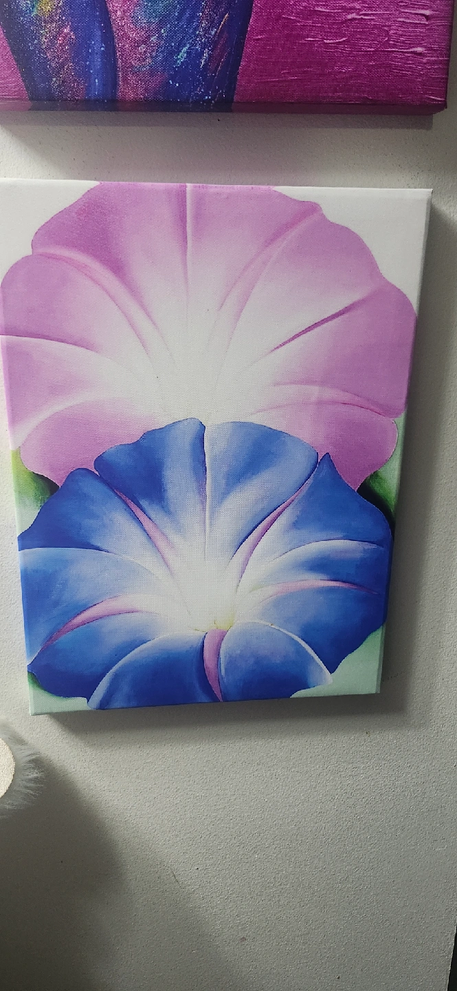 246Here's a lovely floral canvas painting, perfect for adding a touch of colour to any room! The painting features a beautiful arrangement of purple and blue flowers. It's in excellent condition and ready to hang! 12" x 16"