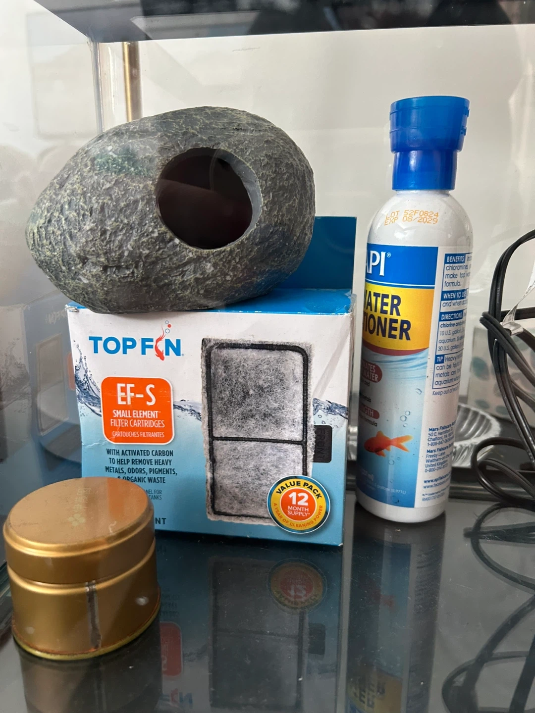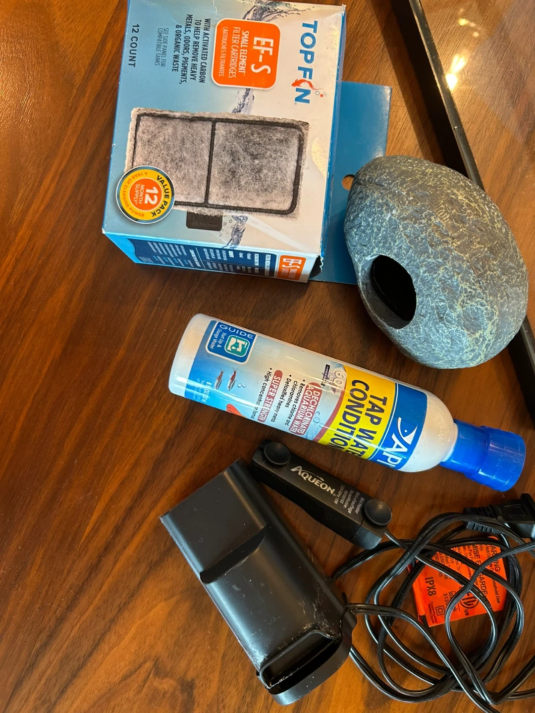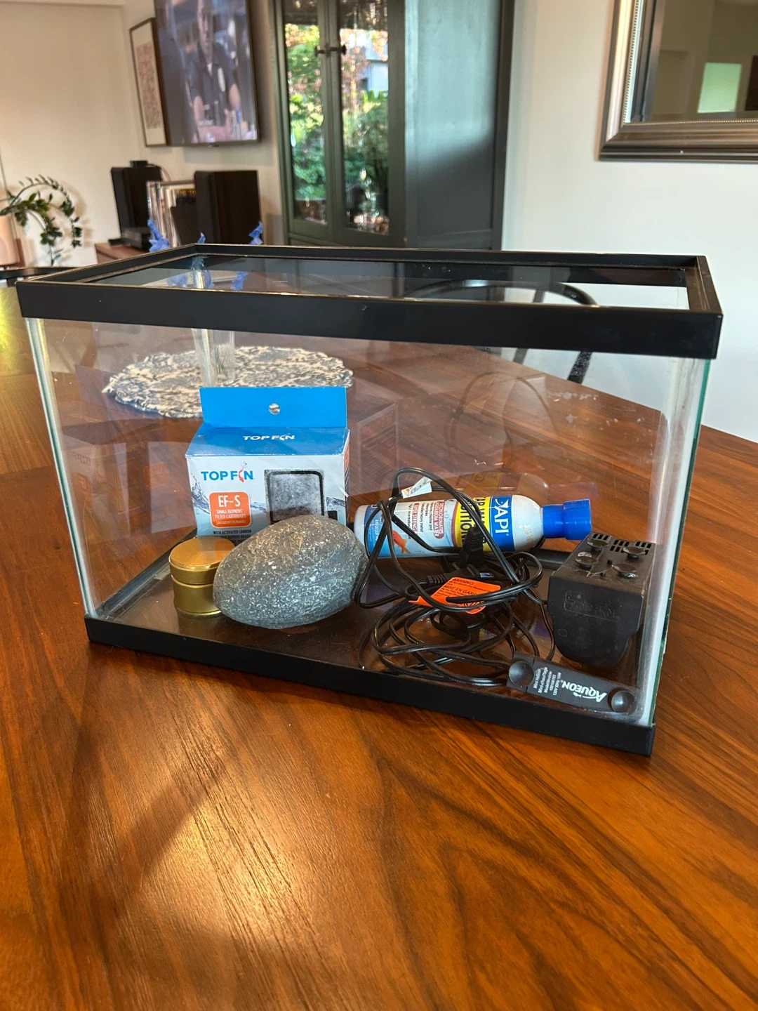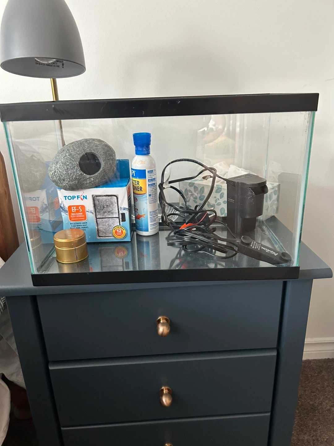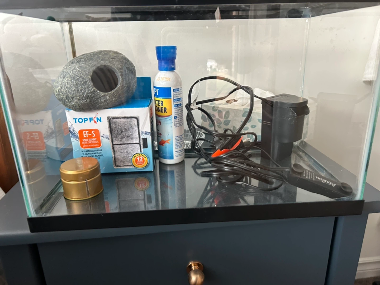 27Selling an aquarium with all the essentials to get started! Includes a Top Fin filter with replacement cartridges, a decorative rock cave, API Tap Water Conditioner, and an Aqueon heater. Perfect for setting up a new home for your fishy friends