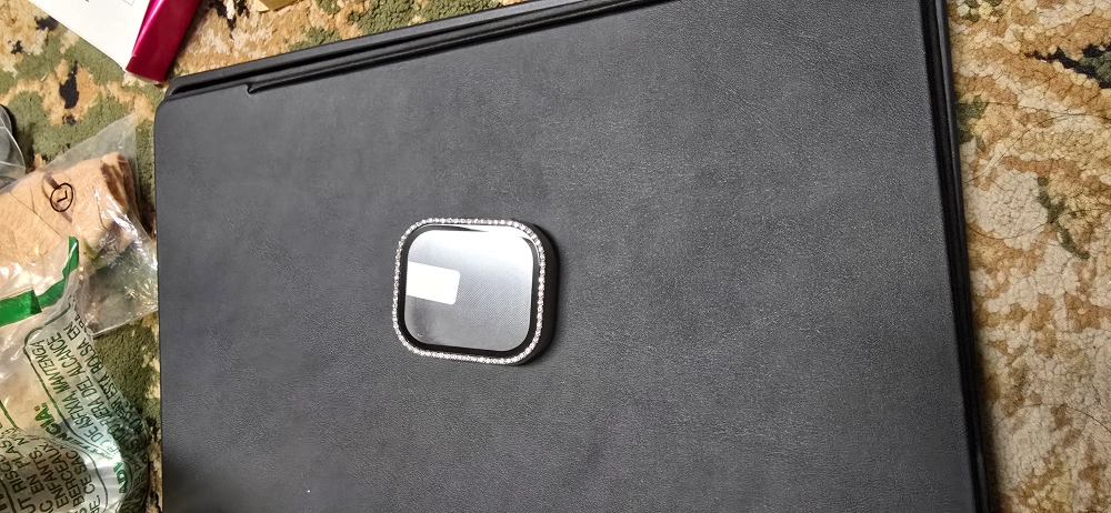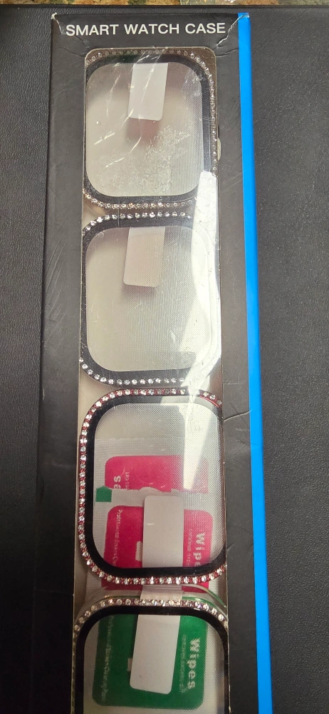 Selling a smart watch case that's sure to add some sparkle! It comes with rhinestones around the edges, giving it a fancy look. Perfect for dressing up your smartwatch and keeping it protected at the same time