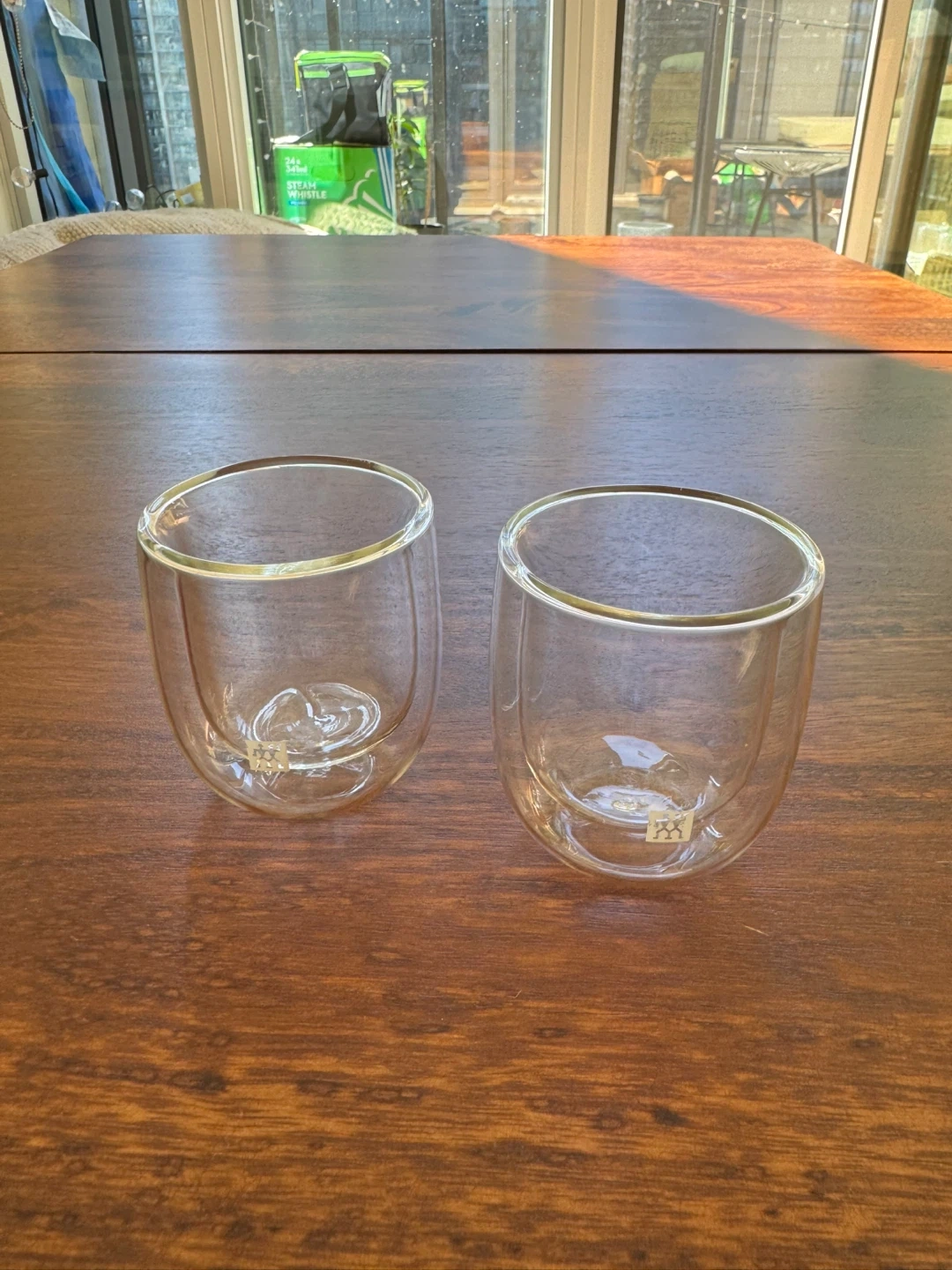 Selling a set of two Zwilling J.A. Henckels double walled espresso glasses. They're in excellent condition and ready for a new home!