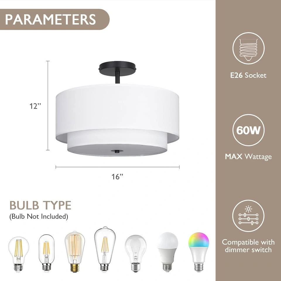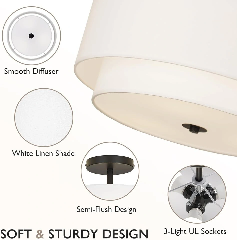 12.6" 2-Layer Drum Ceiling Light 3 Light Semi-Flush
