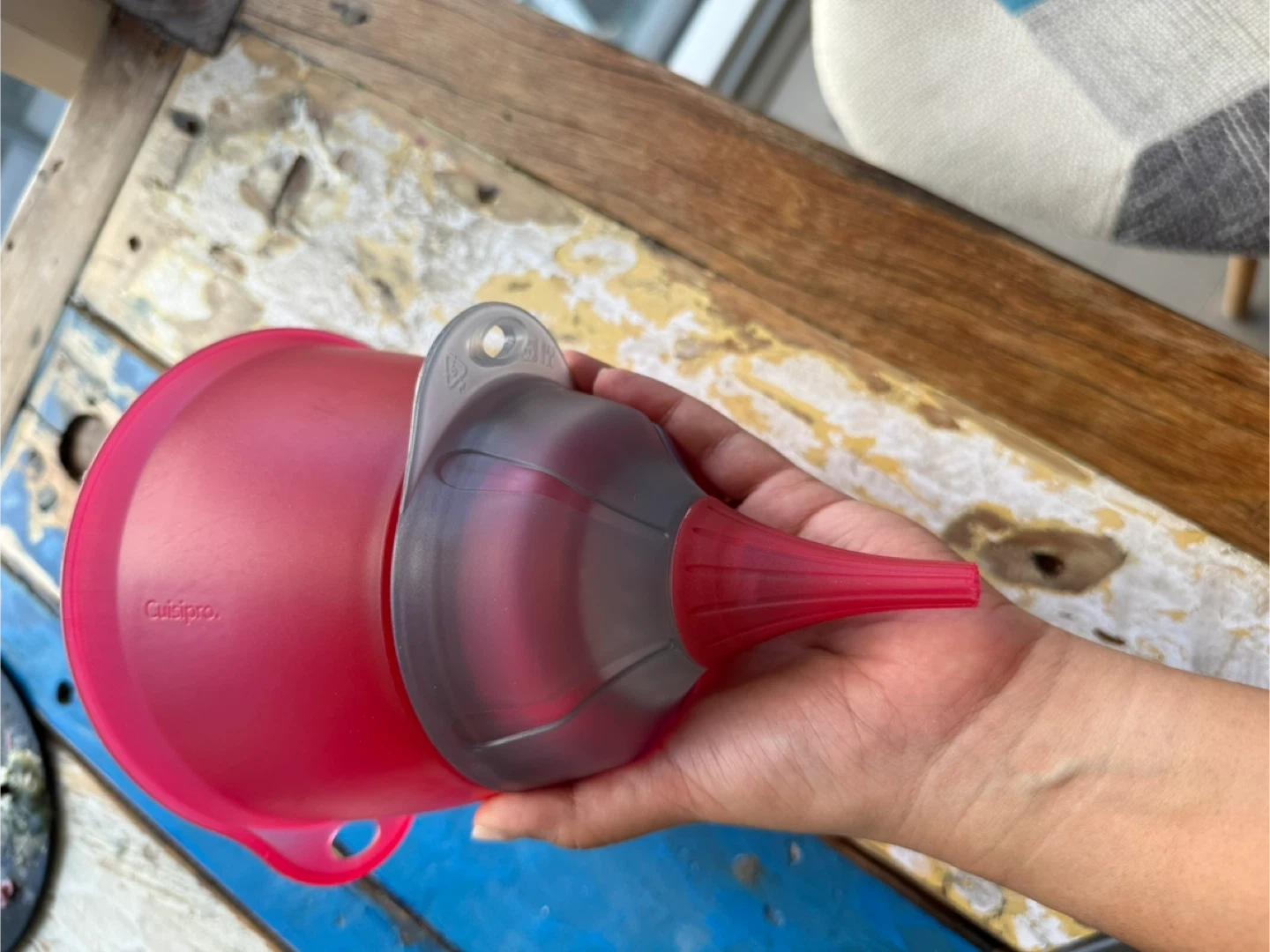 Selling a Cuisipro funnel with a sieve insert. It's in great shape and perfect for all your kitchen needs! The bright pink colour adds a fun touch to your cooking tools
