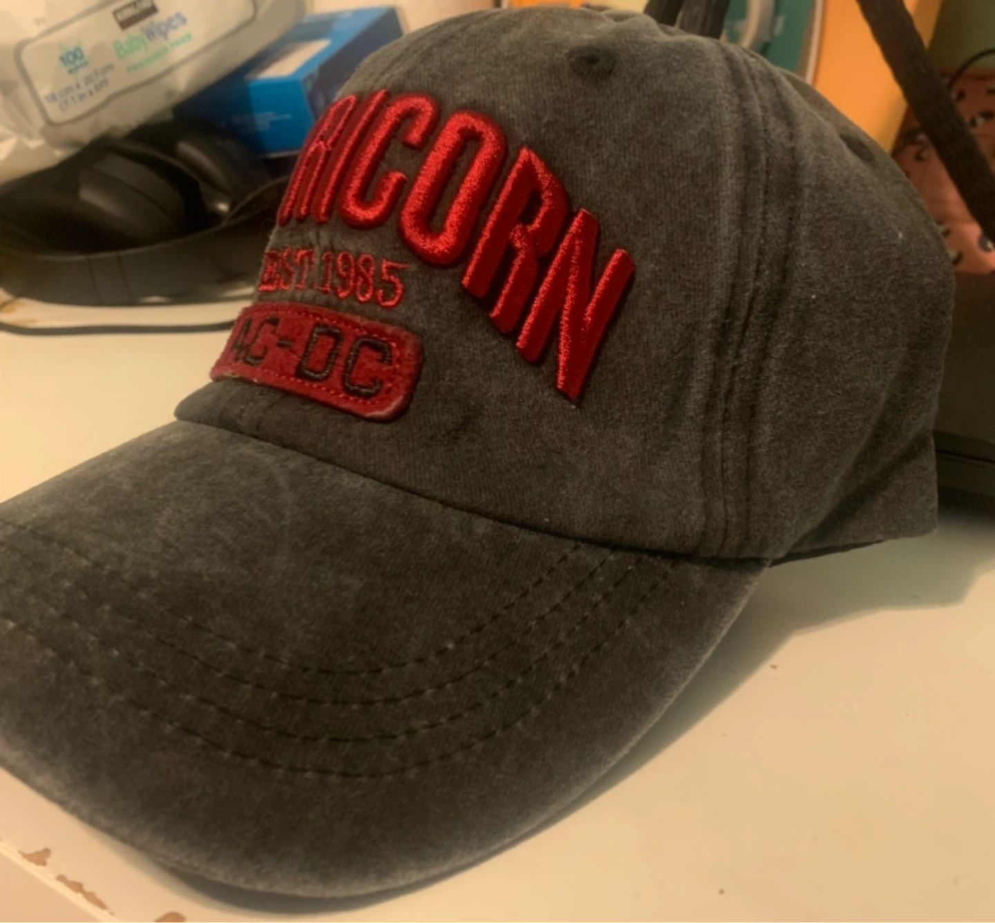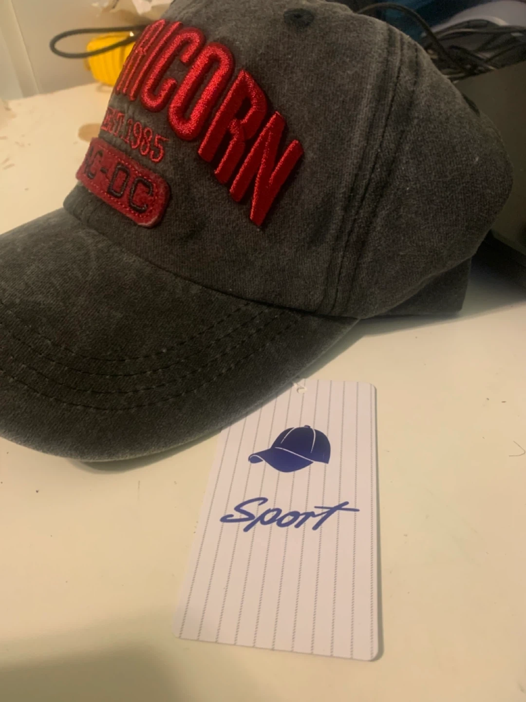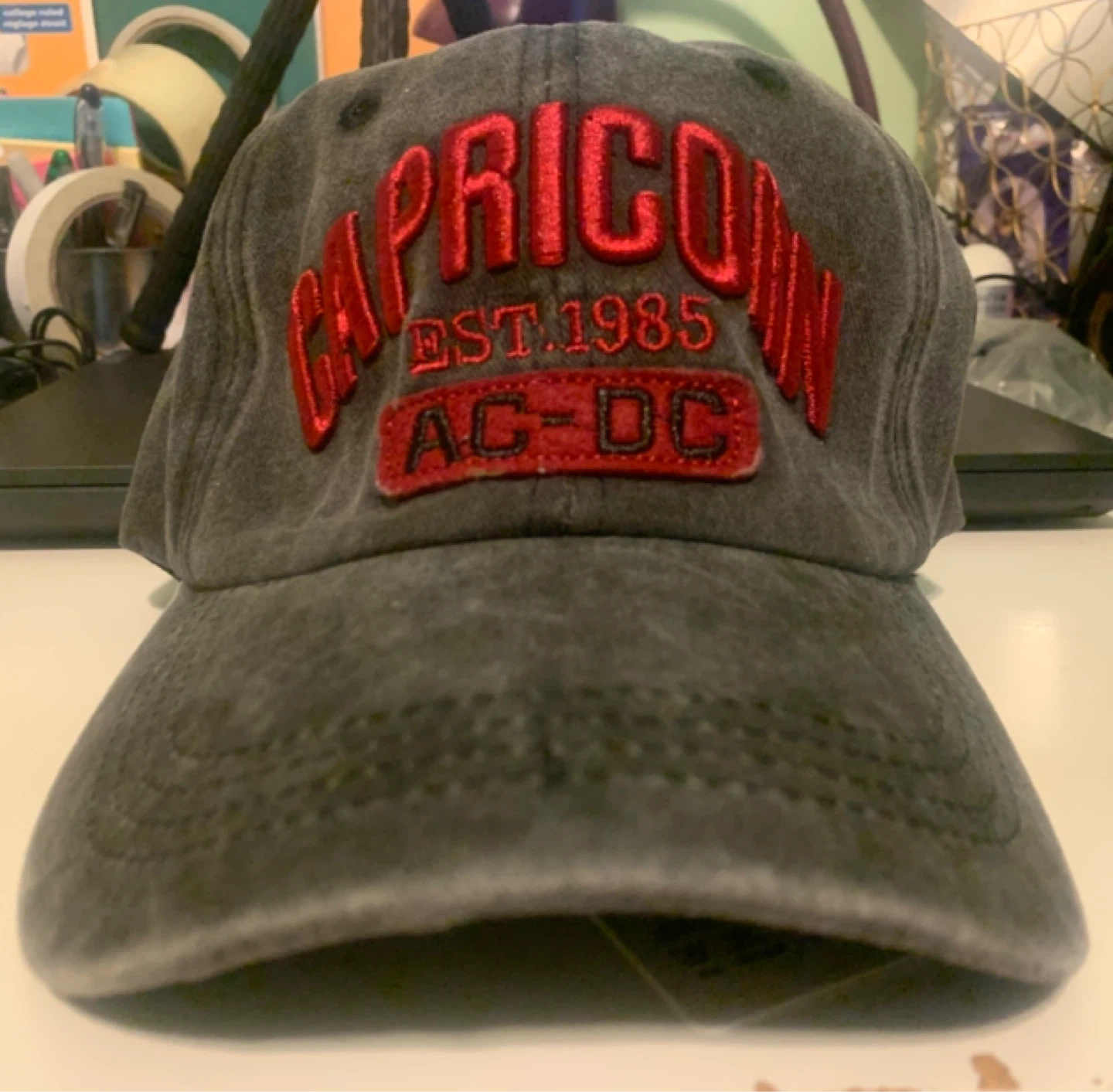 Selling a Capricon baseball cap in grey! The cap has 'Capricon EST. 1985 AC-DC' embroidered in red. It's in great condition and ready for a new home