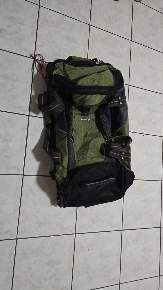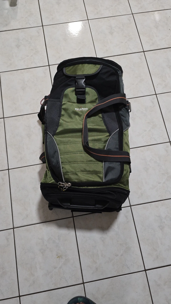 Ricardo Beverly Hills rolling duffel bag in good condition! This bag is perfect for travel with its spacious interior and convenient rolling design. It features a durable construction and multiple compartments for organized packing.
