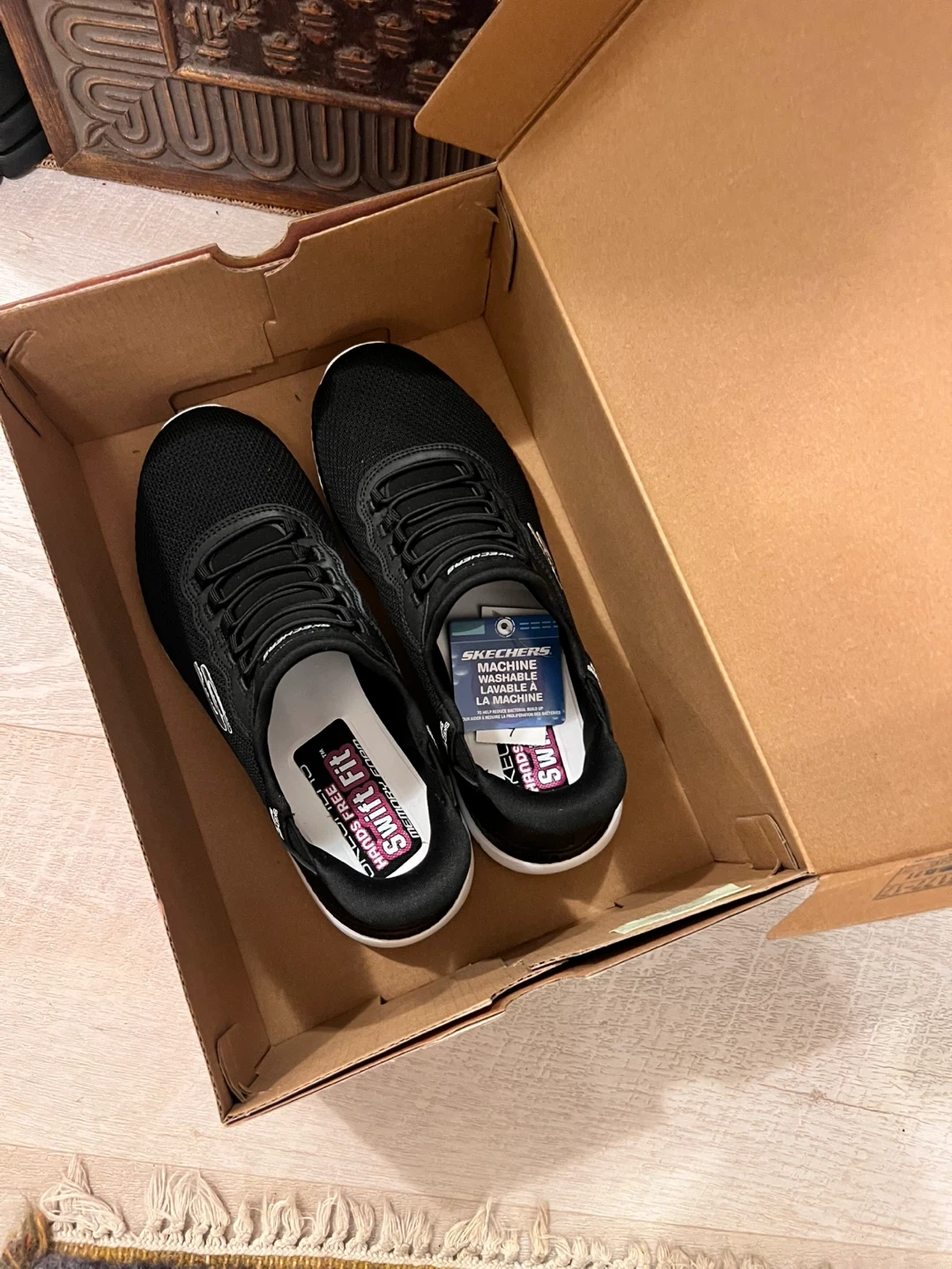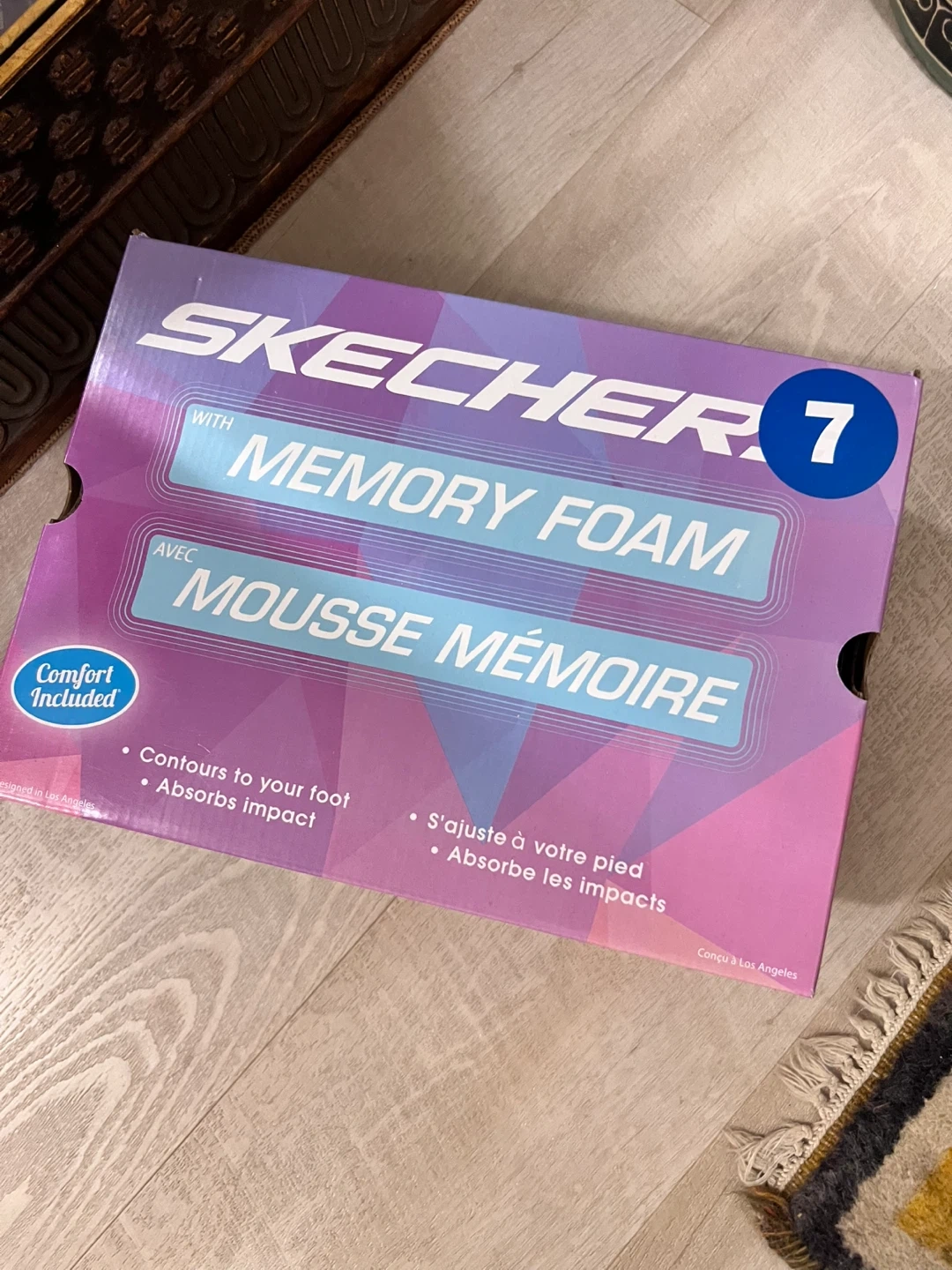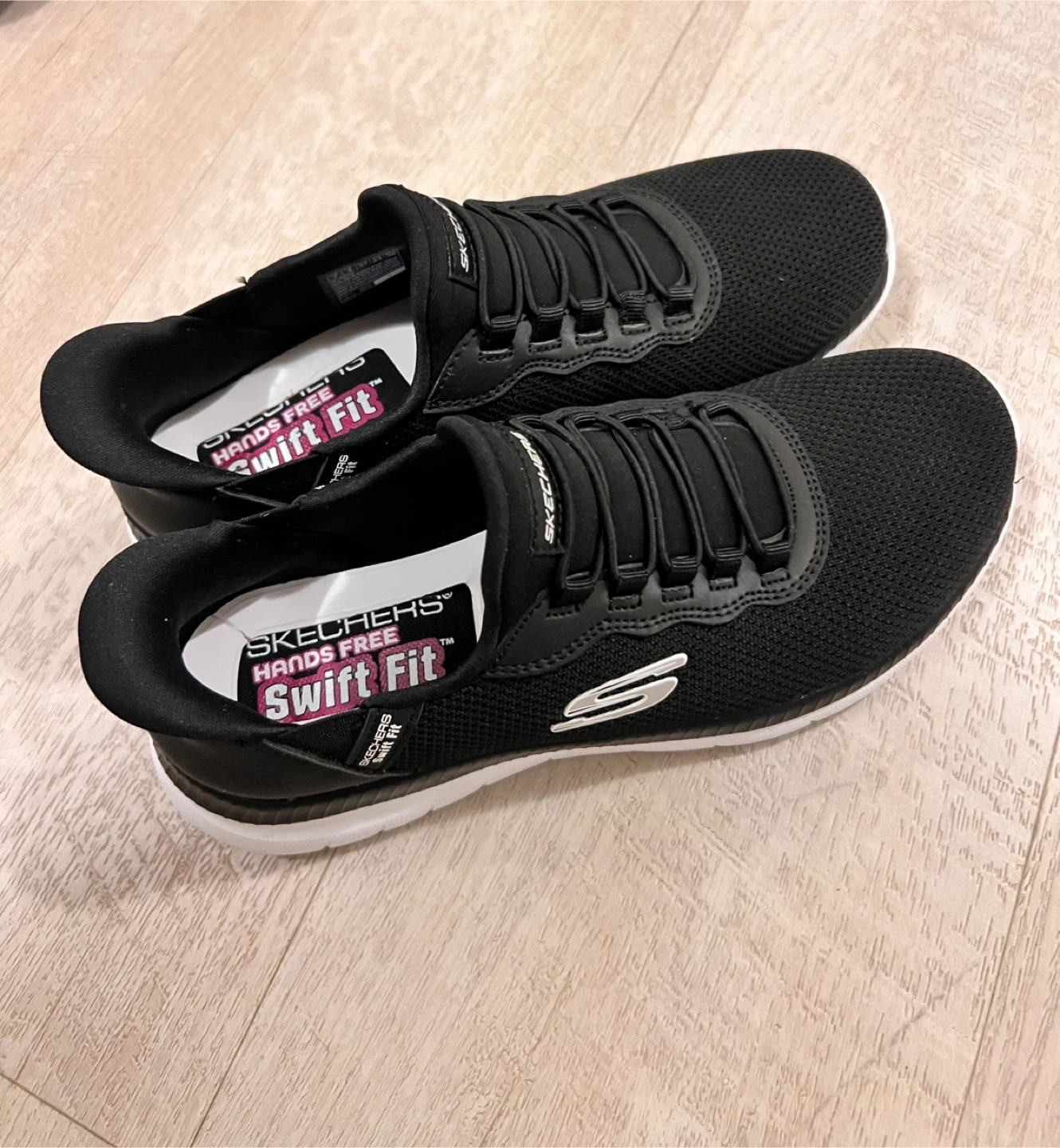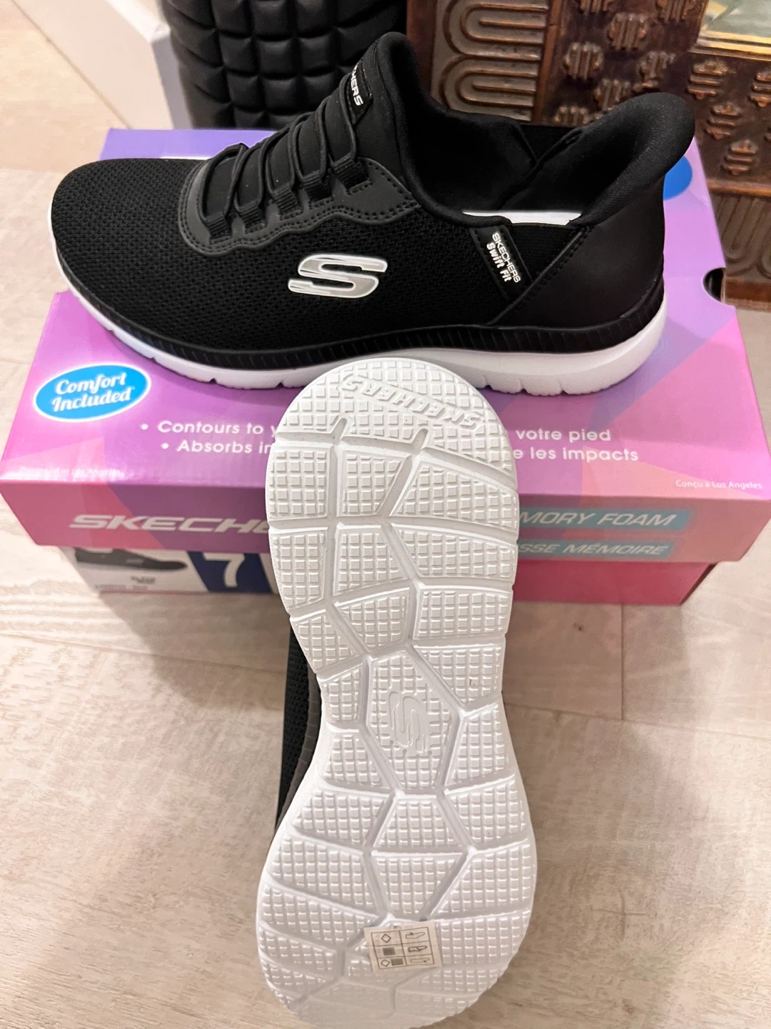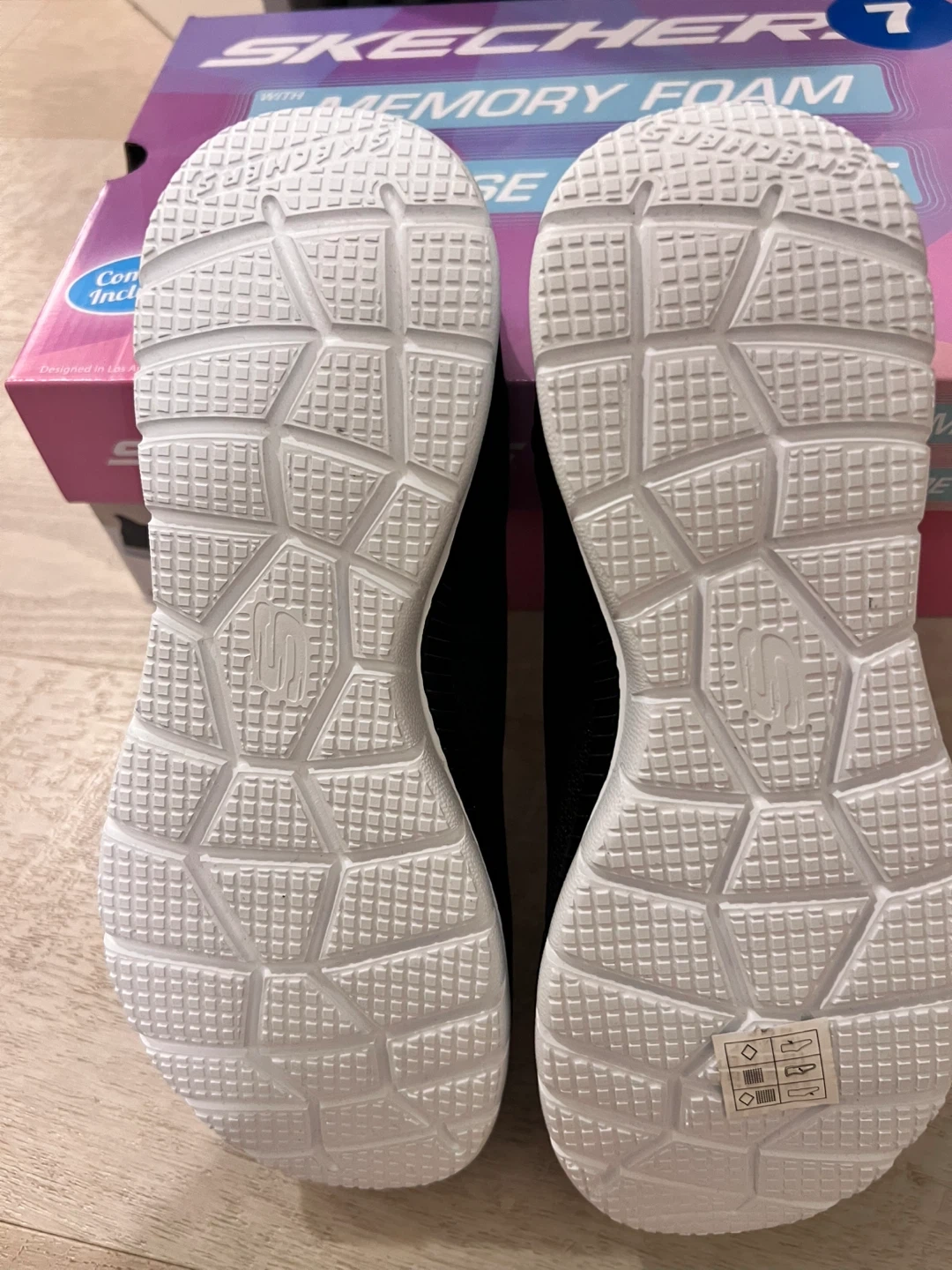 Black size 7 Memory foam slip-in brand new Sketchers! I bought them from Costco and they don’t fit my daughter. I lost the receipt so I can’t return them. Looking to sell them for $35 obo.