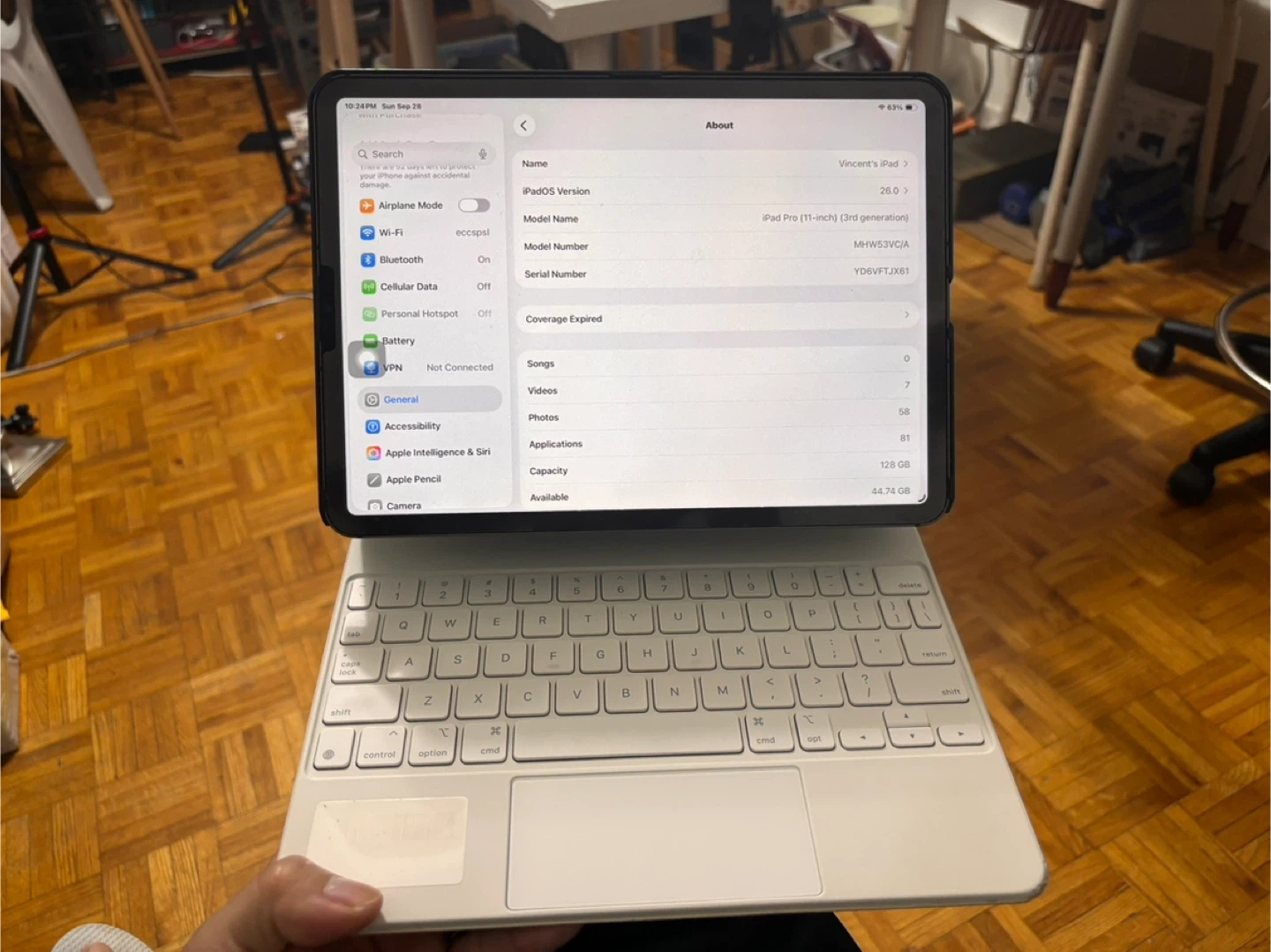 Selling an Apple iPad Pro 11-inch M1 with a Magic Keyboard. The iPad has 128 GB of storage and LTE. It's in great shape!