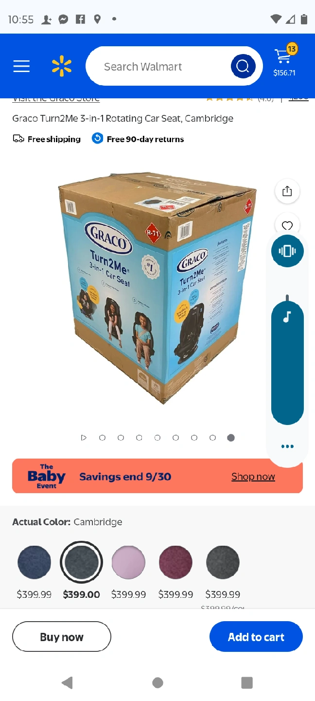 Selling a Graco Turn2Me 3-in-1 rotating car seat in the Cambridge color! It's a versatile car seat that can be used in three different modes as your child grows. The car seat is still in its original bag and has never been used.