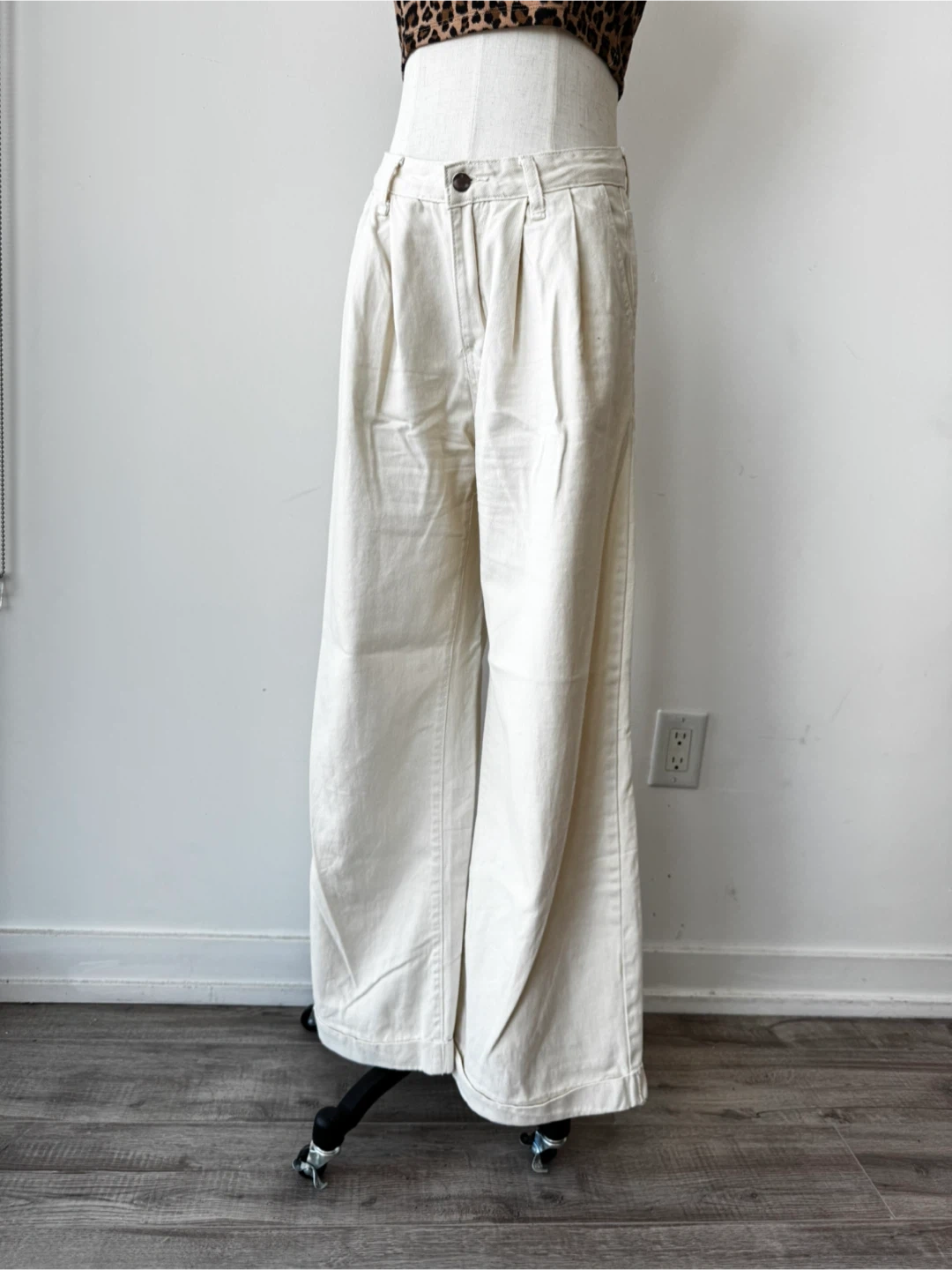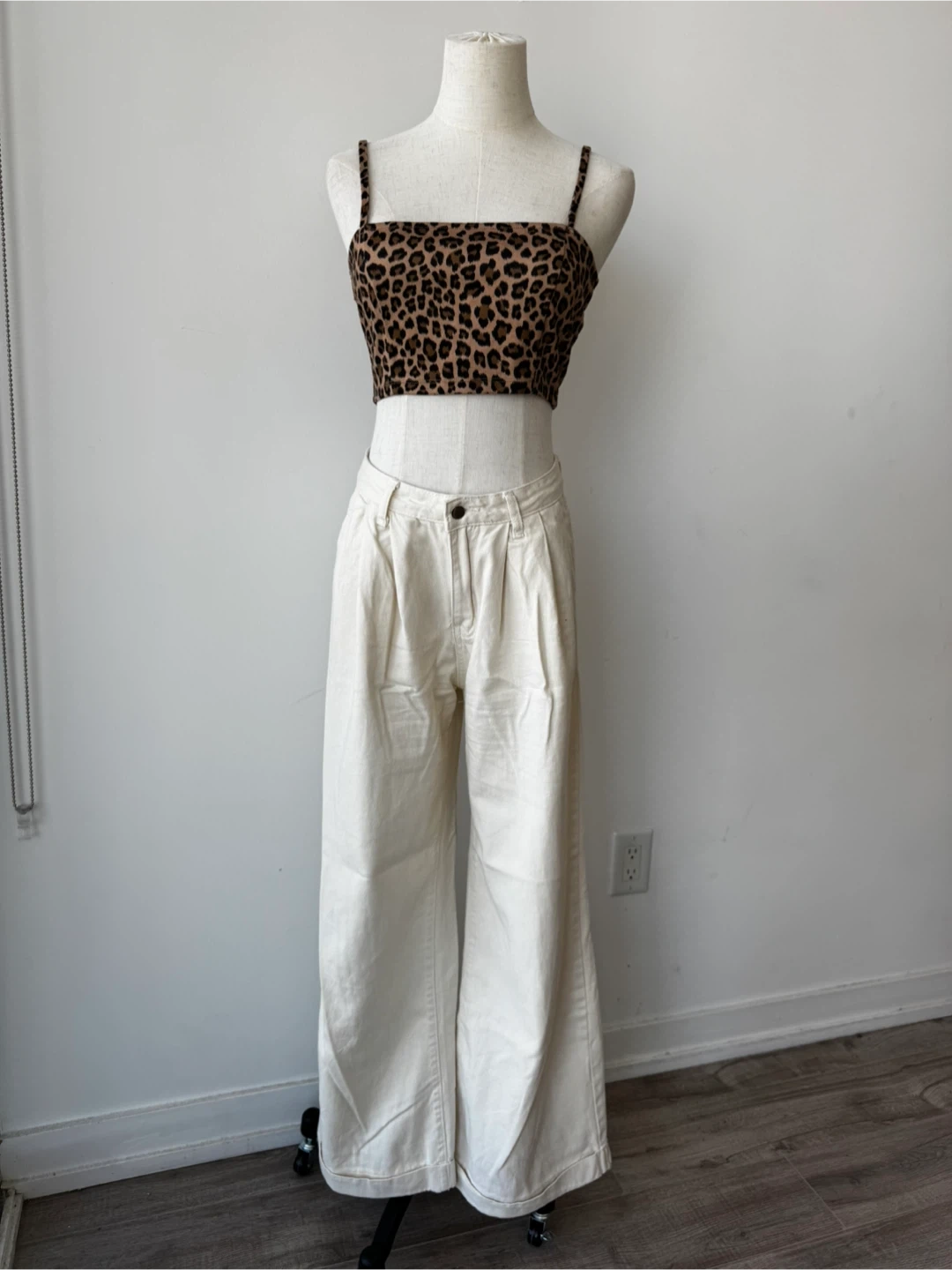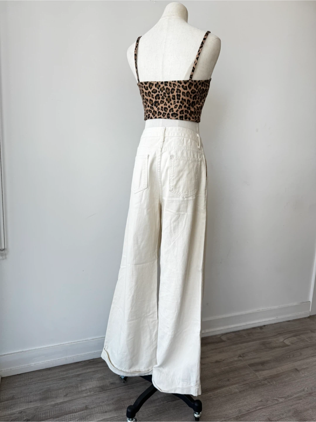 Selling a cute outfit Leopard Print Crop Top (Size Small) + Wide Leg White Jeans (Size 27)