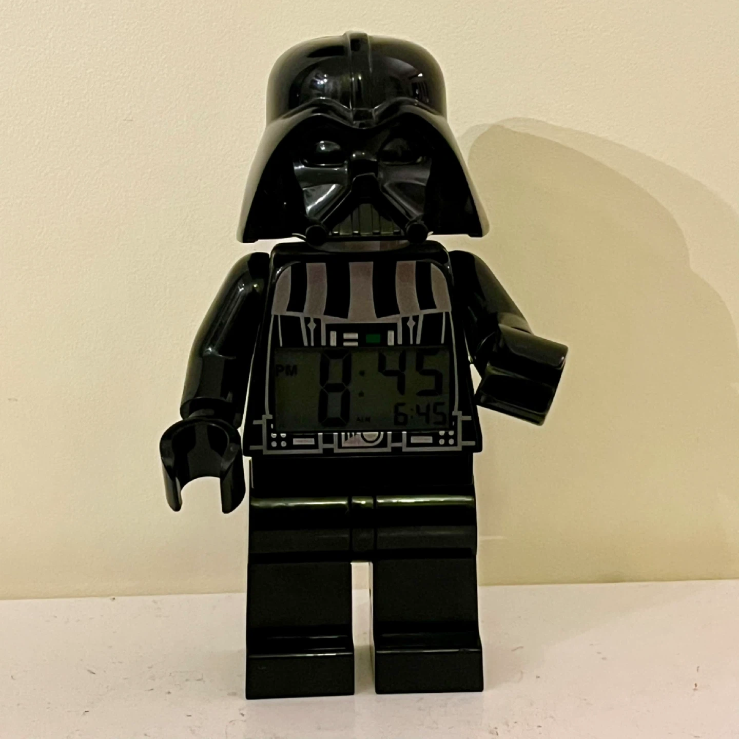 Wake from the dark side! 2014 LEGO Star Wars Darth Vader digital alarm clock. This used clock features a LCD display, movable parts and alarm function.