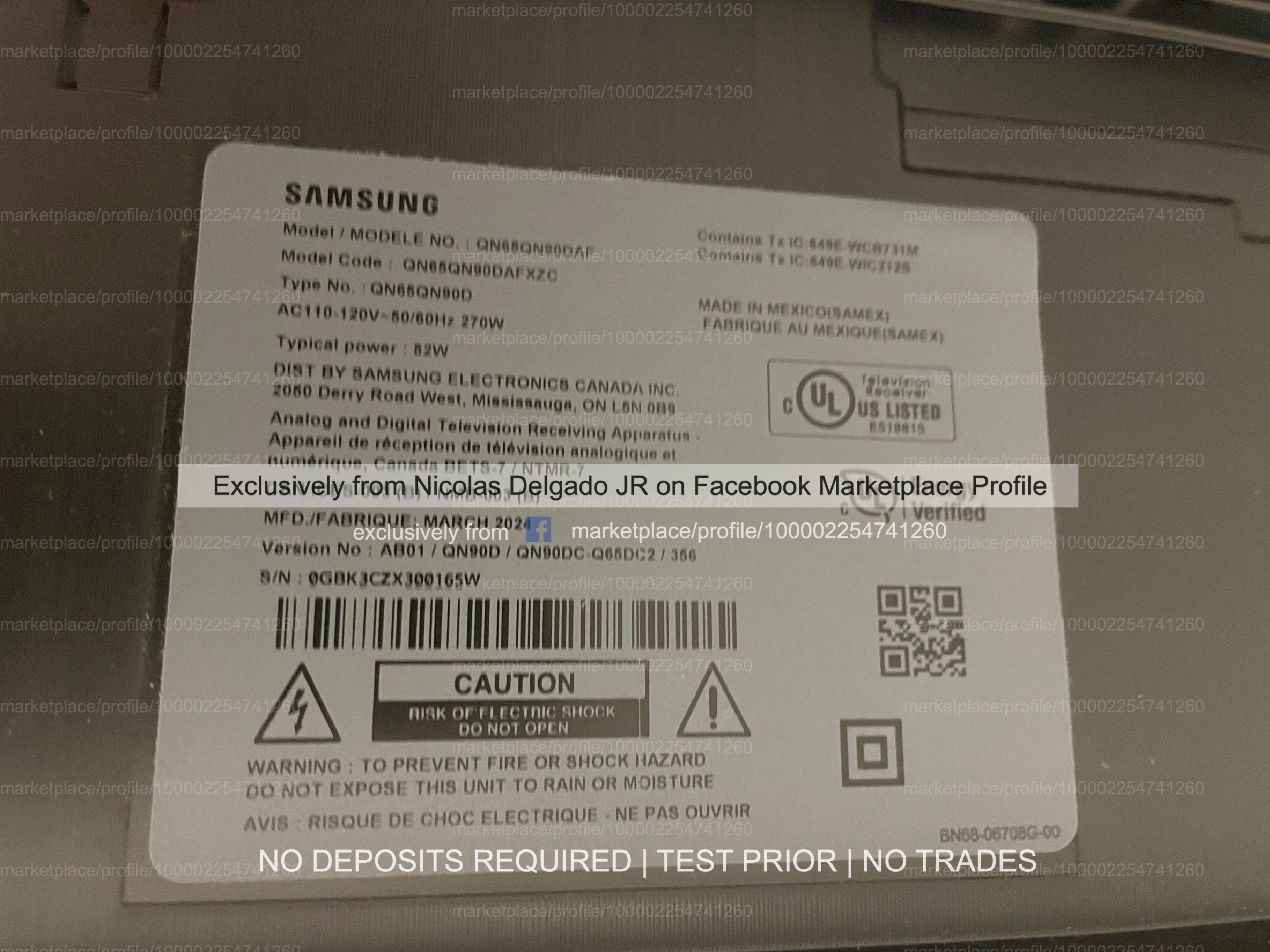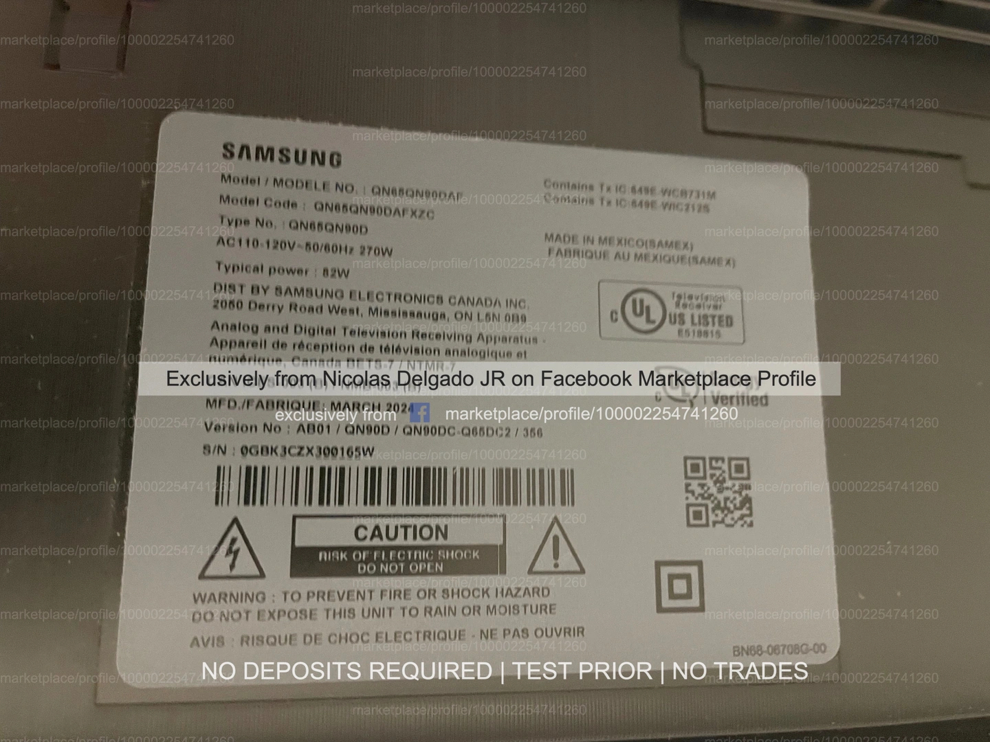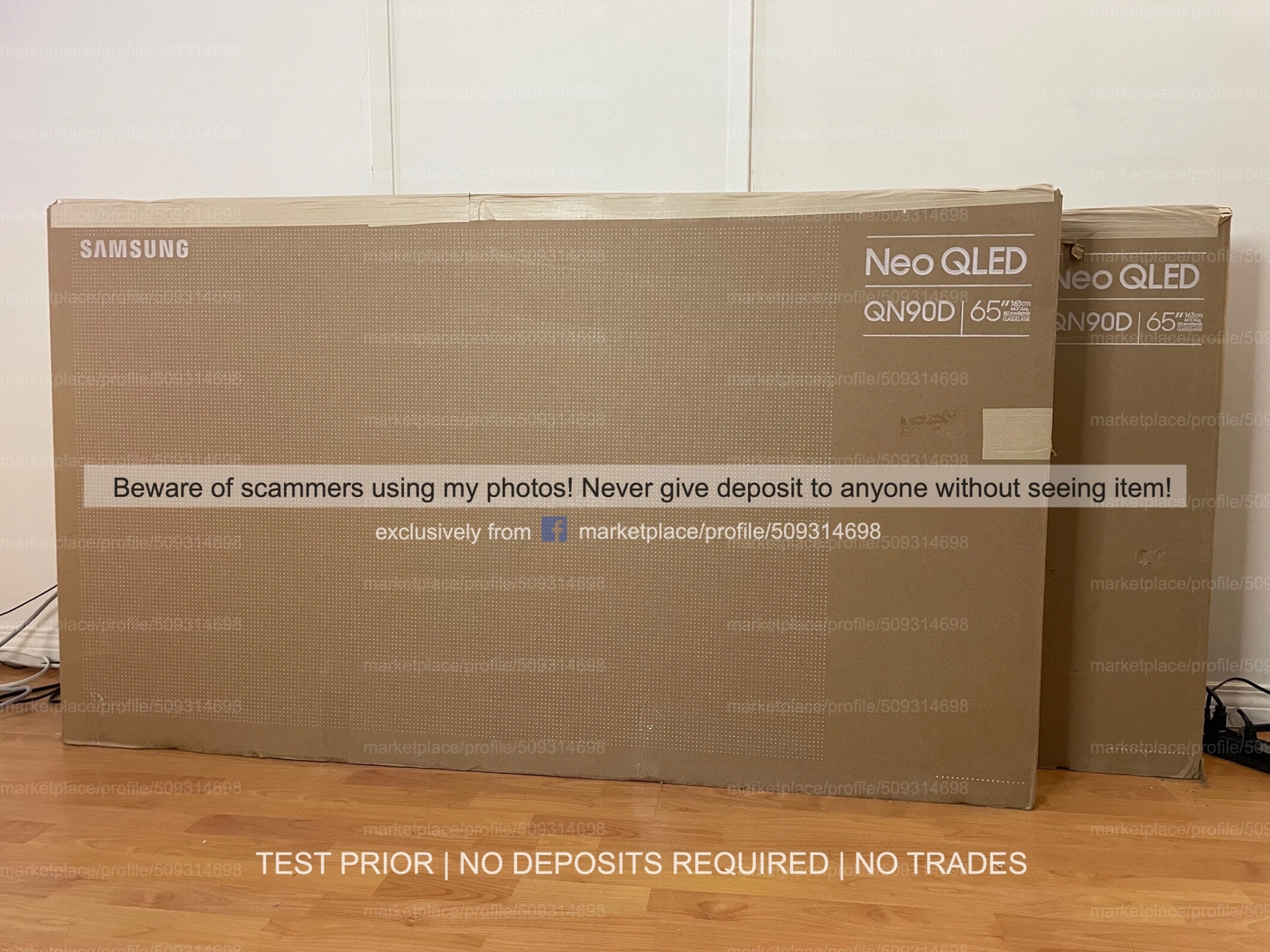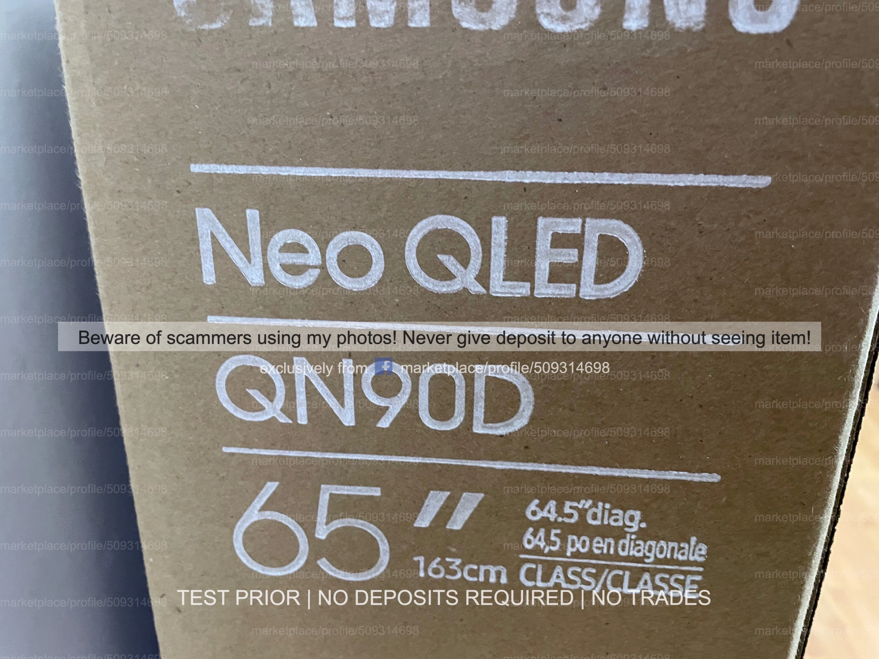 106Please read full ad before messaging! For sale: Open-box > Samsung 65" QN65QN90DAFXZC 4K UHD HDR NEO QLED Mini LED Smart TV. Samsung’s flagship 2024/25 top tier model in perfect condition, ready for gaming and entertainment. Test and inspect before purchase—no deposit required! IN New condition state! Pricing (FIRM) >>>>>>>>>>>>>>>>>>>> Option 1> $1,150 – Includes remote, power supply, and box (No Legs) Option 2> $1225 – Includes legs/stand, remote, power supply and box. Key Features: * Cutting-edge NEO QLED & Mini LED technology for stunning visuals * 4K resolution with 120Hz native refresh rate, ideal for PS5/Xbox Series X * 4 HDMI ports (all support 4K 120Hz gaming) * 2 USB media ports, Bluetooth, ultra-slim design * Tizen OS for seamless streaming and smart features Pickup Location: Near PNE Grounds, Vancouver, BC (office location). Check specs & reviews: rtings.com/tv/reviews/samsung/qn90d-qn90dd-qled Serious buyers only. Message to arrange inspection/pickup/drof off fee!