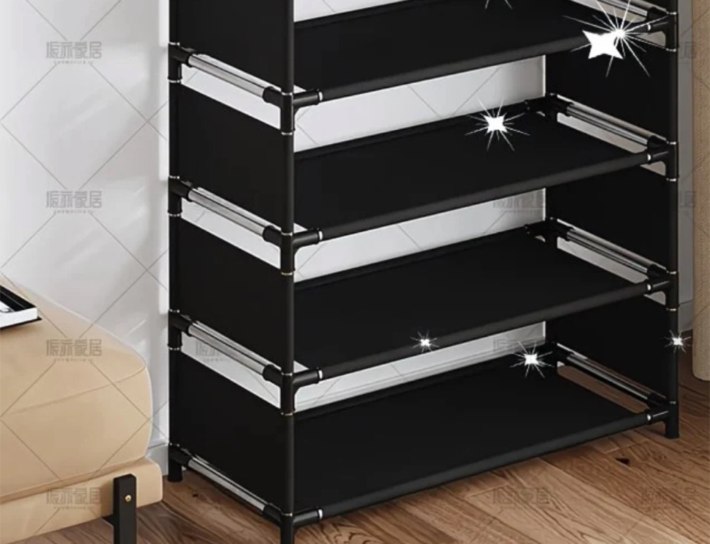 Selling a brand new, still-in-packaging 4-tier shoe rack! It's perfect for organizing your shoes and keeping your entryway tidy. Easy to assemble and lightweight