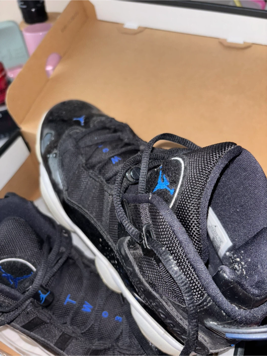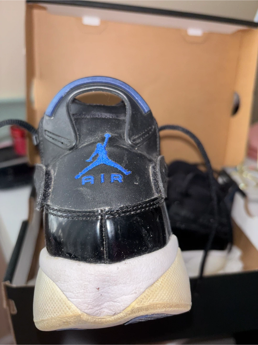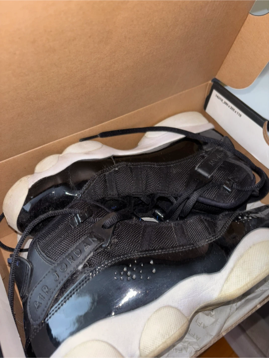 Selling a pair of Jordan 6 Rings (GS) in black and hyper royal. They are size 6.5Y and come with the box. Please see photos for condition
