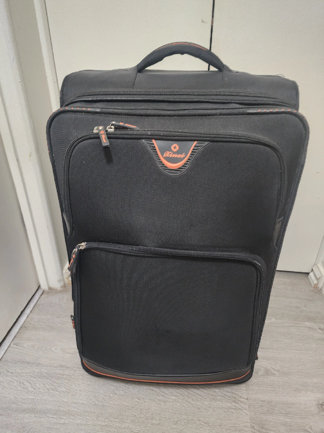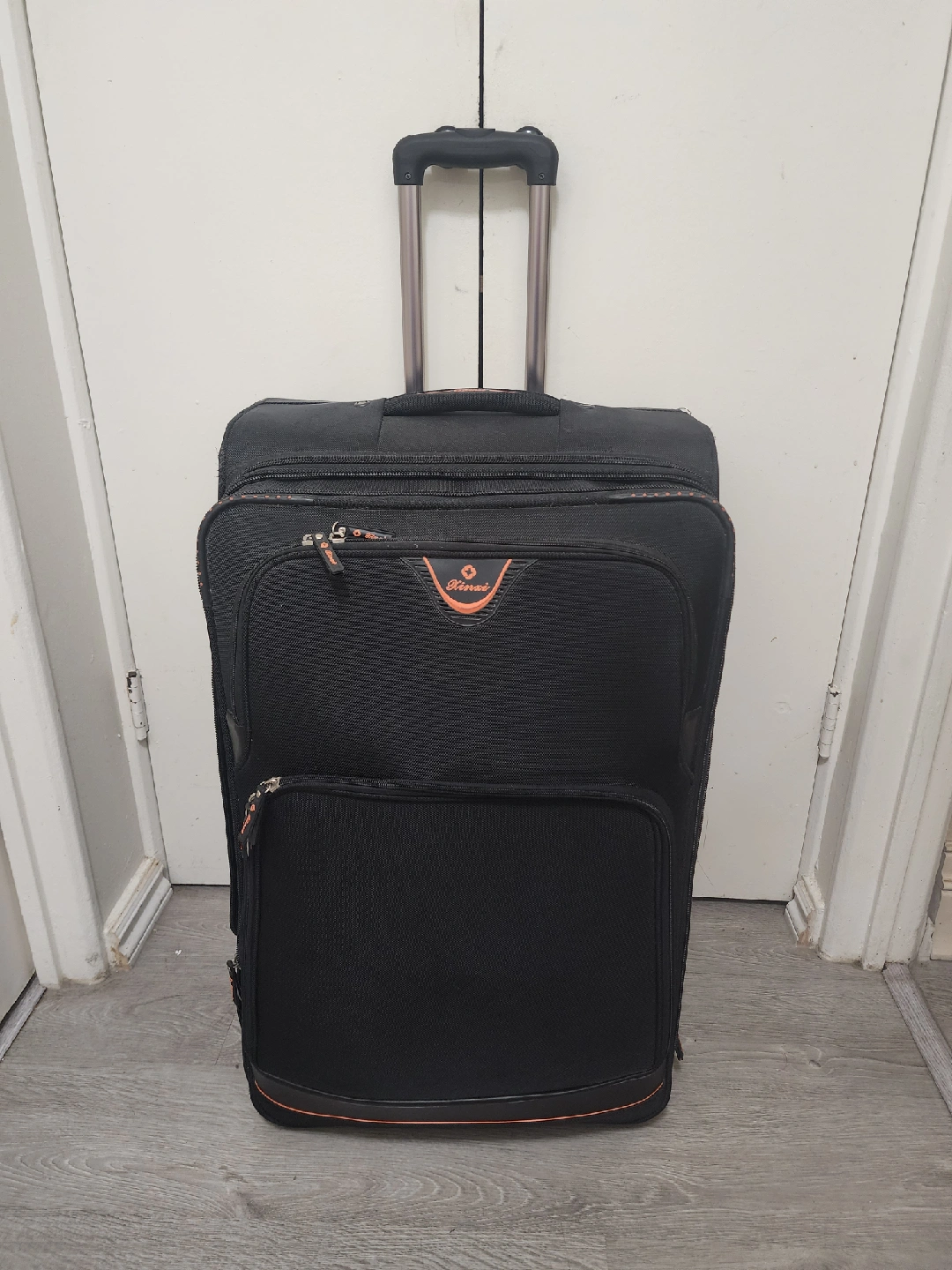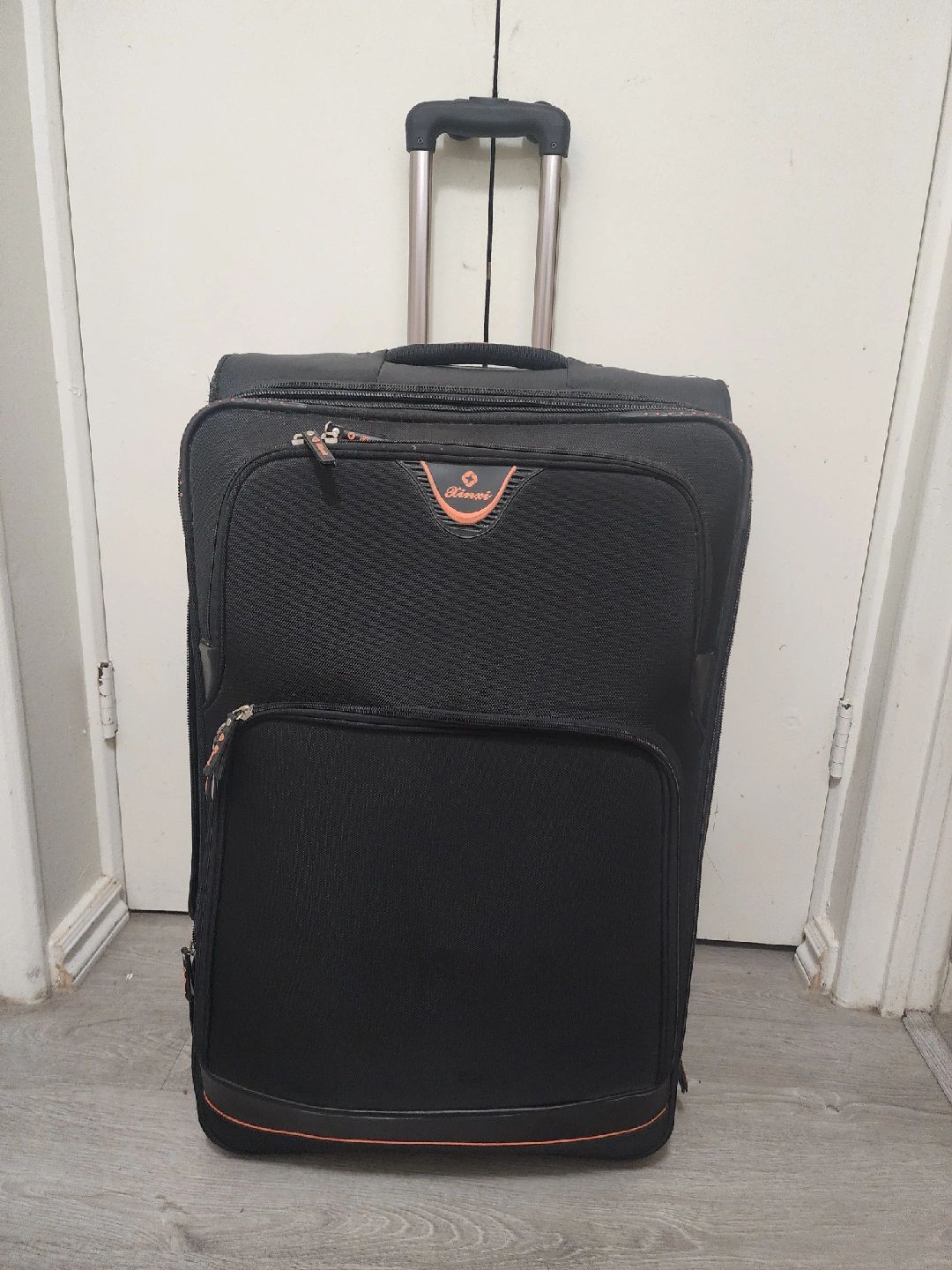 Selling a black checking luggage from Heys. It's in very good condition and ready for your next trip! Features include a retractable handle, expendables zipper and smooth-rolling wheels. very good quality.