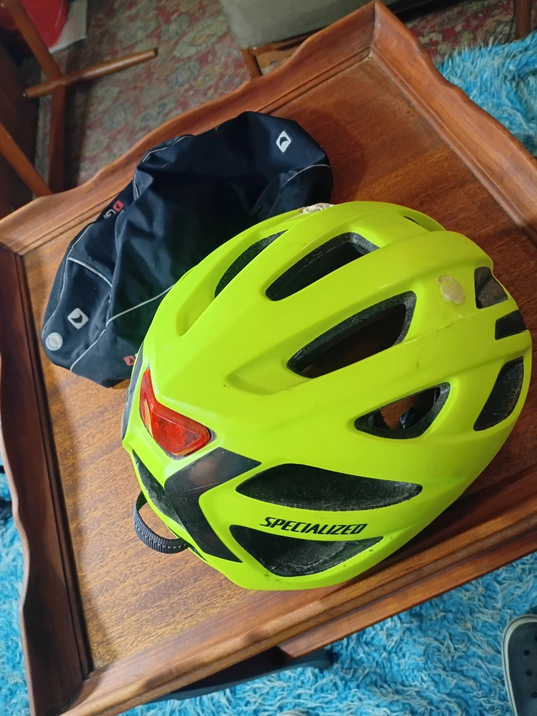 Selling a Specialized bike helmet in neon yellow. It's in used condition, as you can see in the photos. Perfect for cycling around town!