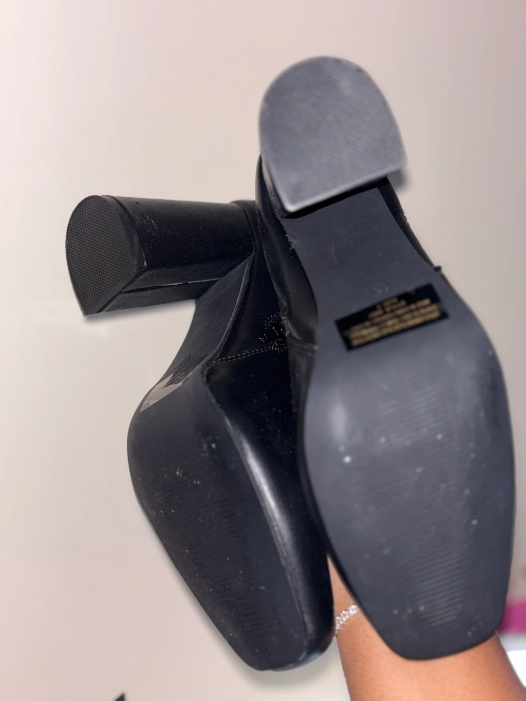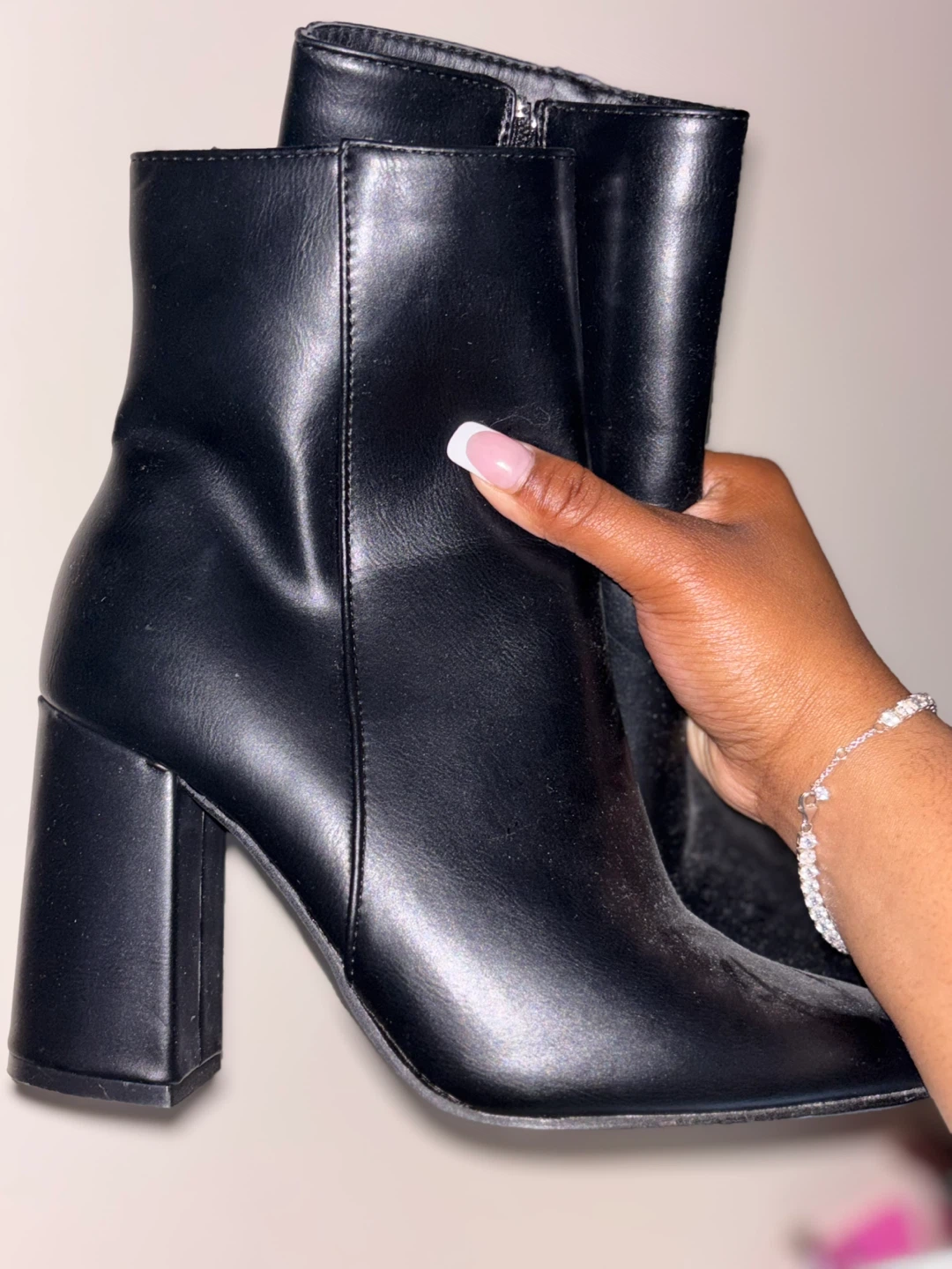 Selling a pair of black ankle boots. They have a block heel and a zipper closure. Great for everyday wear!