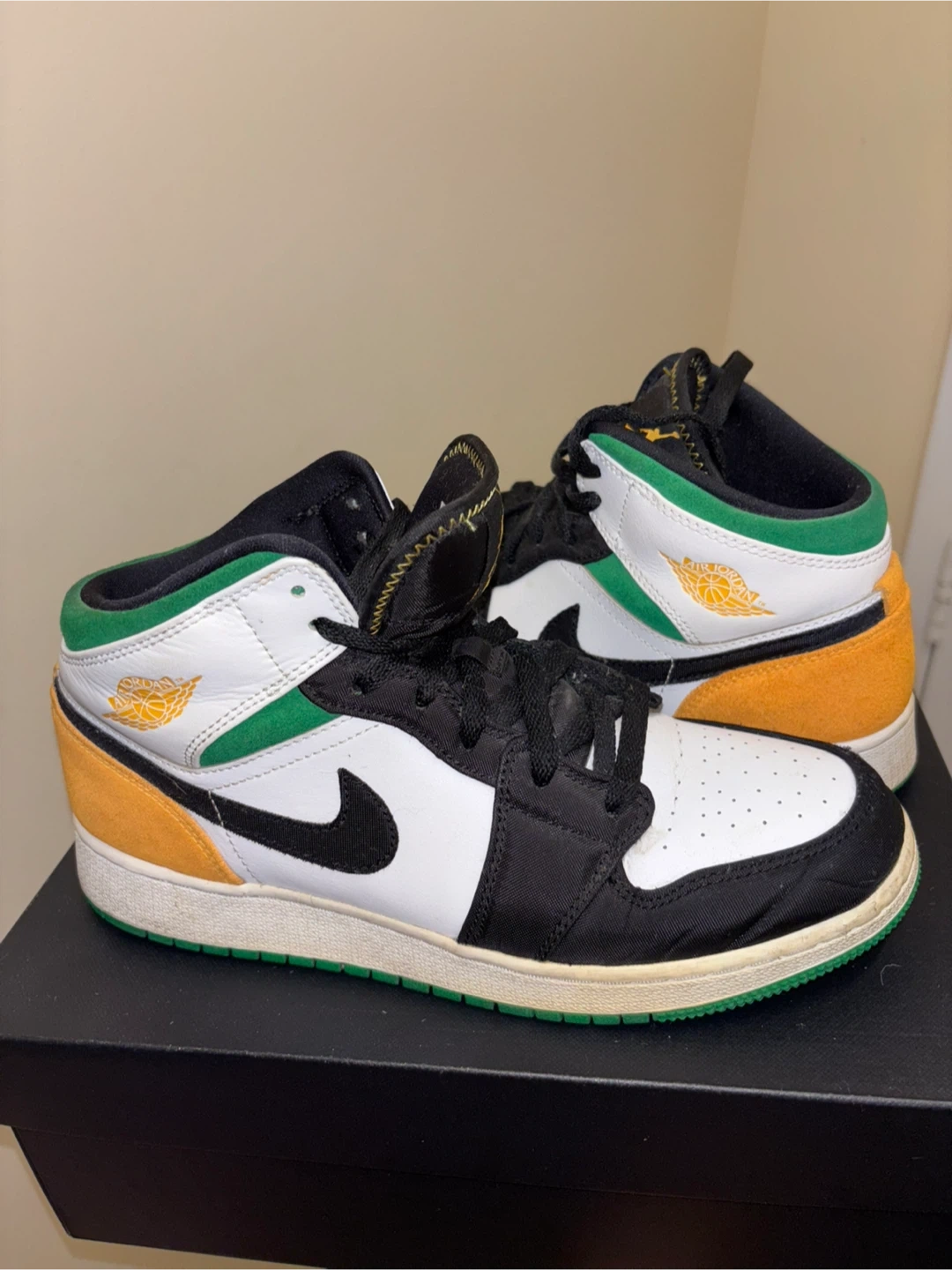 Selling a pair of Air Jordan 1 Mid SE in size 7Y. They are in good condition with some signs of wear. Great for everyday wear!