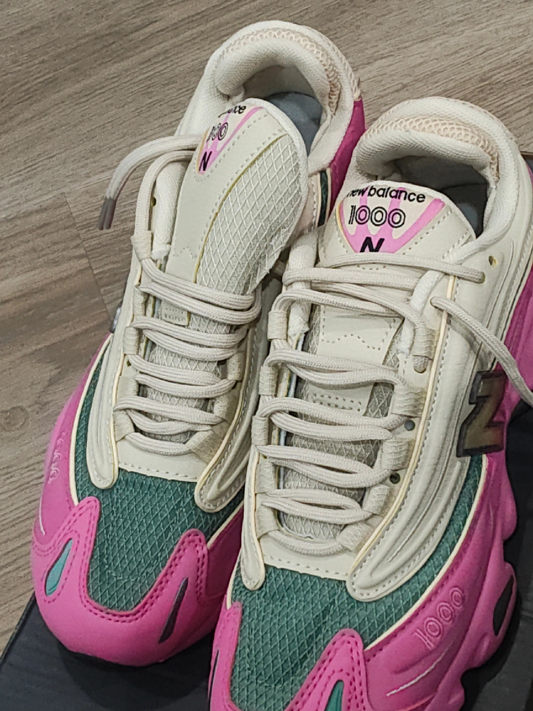 Selling a pair of New Balance 1000 sneakers in a unique pink and green colourway! These shoes are in good condition and ready for a new home. Perfect for adding a pop of colour to your outfit!
