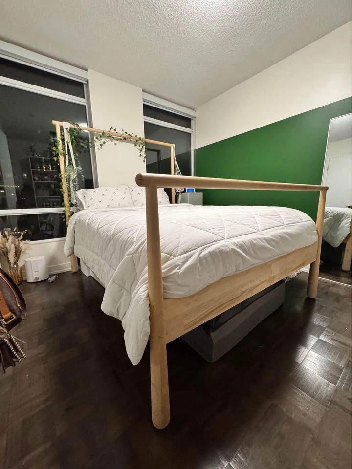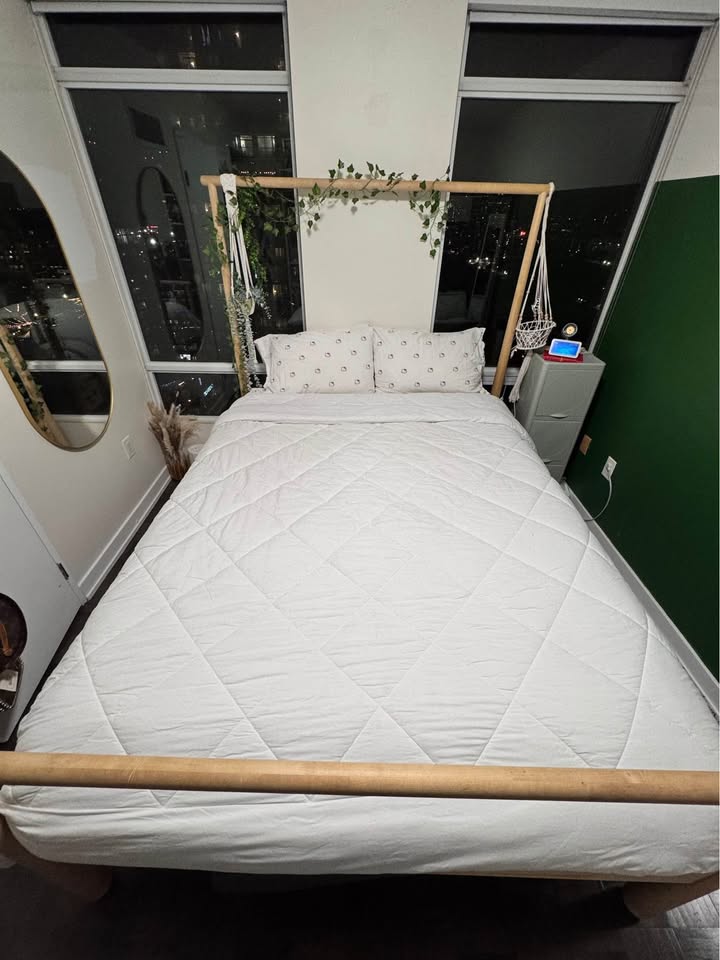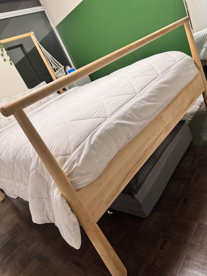 This bed has been discontinued by IKEA but it is a beautiful piece made of solid birch wood. It is in perfect condition. I love this bed but need more space in my room. It is disassembled and ready to be picked up. All pieces carefully taken apart and easy to assemble! Located at Bathurst and Fort York for pick up.