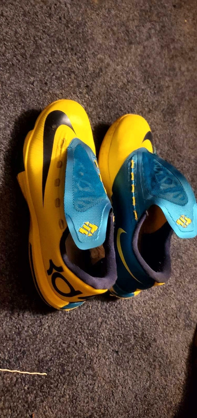 Get ready to elevate your game with these Nike KD basketball shoes, size 9 mens! These sneakers are in good used condition, ready to hit the court or the streets. Perfect for athletes and collectors alike, these shoes offer superior comfort and style. Additional features include: * Dynamic Flywire cables for lockdown. * Responsive cushioning for explosive movement. * Durable rubber outsole for traction. Based on current listings, similar used Nike KD shoes sell for between $75 and $150. Don't miss out on owning a pair of these iconic basketball shoes! If the ad is up, they are available!