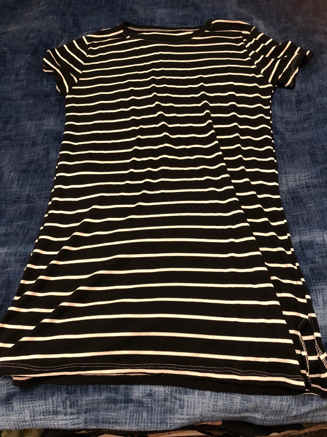 Cute striped t-shirt dress in black and white! It's in great condition and ready for a new home. Perfect for a casual day out or a comfy night in