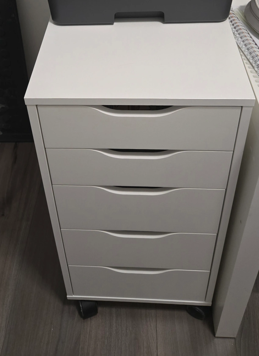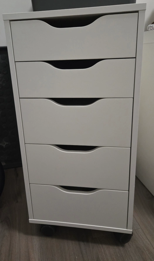 Selling an IKEA Alex drawer unit on casters! This handy unit is perfect for adding extra storage to your home office or craft room. It's in great shape and ready to roll into your space. In a very good condition.