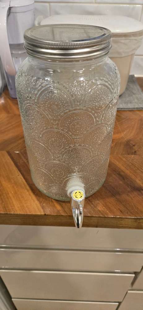 Selling a beverage dispenser with a spigot. It's great for parties or everyday use. Perfect for serving lemonade, iced tea, or water.
