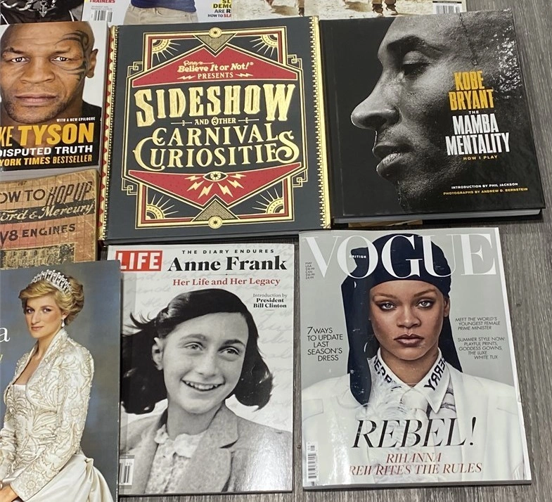 Large Lot Collectible Books, Magazines & Décor – 40+ Pieces E-Transfers Accepted Pick Up Anytime Offered here is a large mixed collection of books, magazines, and collectibles spanning sports, pop culture, film, music, history, automotive, and curiosities. Items are available individually or as one complete lot at a discounted price. 📚 Individual Pricing All items available separately at the prices listed below. Pop Culture & Icons LIFE – Princess Diana: A Princess Remembered – $20 LIFE – Harry Potter: Boy Wizard Turns 40 – $15 LIFE – Barbie Special Edition – $15 LIFE – Anne Frank: Her Life & Legacy – $15 Vogue – Rihanna Rebel Cover – $20 The Beatles – 50 Years Later Special Edition – $15 Marilyn Monroe (Entertainment Weekly Special) – $12 Entertainment Weekly – Jamie Foxx Special – $10 Michael Myers / Halloween Special Edition – $15 Prince – Collector’s Edition (Spotlight) – $20 Celebrities & Biographies Mike Tyson – The Undisputed Truth (Hardcover) – $15 Rowdy Roddy Piper – Rowdy Biography – $12 John Wayne – Official Collector’s Edition (x2 different issues) – $15 each = $30 Kobe Bryant – The Mamba Mentality (Hardcover) – $30 SOLD (Not Available) Sports & Magazines NBA Legends (Unofficial Special) – $15 NFL Sticker Albums (Set of 8) – $35 Pro Football Guides (2020 issue) – $10 Pro Wrestling Illustrated (WrestleMania Issue) – $12 Men’s Health – Mark Wahlberg Cover – $8 Curiosities & History Ripley’s Believe It or Not – Sideshow & Carnival Curiosities (Boxed Hardcover Edition) – $30 World’s Deadliest Fighting Secrets (Booklet) – $15 American Scary Places (Haunted & Creepy Sites) – $12 Rock: The Music That Changed a Generation (Special Issue) – $15 Automotive & Reference Great Marques – Porsche (Hardcover) – $25 Great Marques – Ferrari (Hardcover) – $25 Auto Service & Repair (Vintage Reference Hardcover) – $20 Yellow Crate of Assorted Hardcovers – $40 bulk Miscellaneous Popular Titles James Bond – 25 Films in One (Special Issue) – $15 Friends – The Ultimate Guide: 25th Anniversary Special – $15 Unique Décor Item Decorative Skull Display Box (Gothic / Sugar Skull Style) – $40 💰 Group Value Option (Collector + Reseller Appeal) If purchased individually, this collection totals $445–470 CAD in value. Buy the entire lot for $225 CAD — ideal for collectors who want instant variety, or resellers looking at a clear profit margin. At this price, you’re getting the lot for less than 50% of its individual resale value, leaving plenty of room to flip items piece by piece. Perfect for collectors, readers, or resellers seeking ready-to-go inventory. Smoke-free and pet-free home. books magazines lot, LIFE Diana, LIFE Harry Potter, Kobe Bryant book, Ripley’s Believe It or Not, Ferrari Porsche books, collectible sports magazines, Prince collector’s edition, Friends TV guide, Marilyn Monroe magazine, Halloween Michael Myers, Barbie LIFE special, skull display box Price: Individual Pricing Listed OR $225 CAD for Full Lot