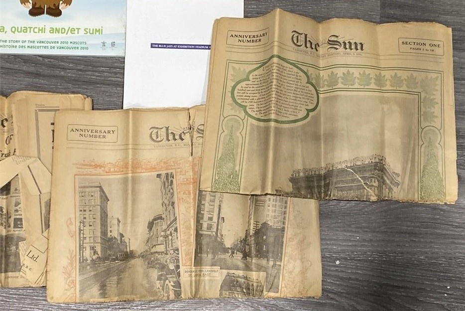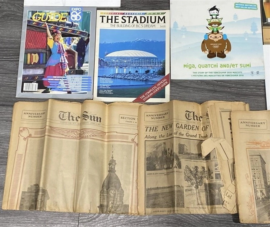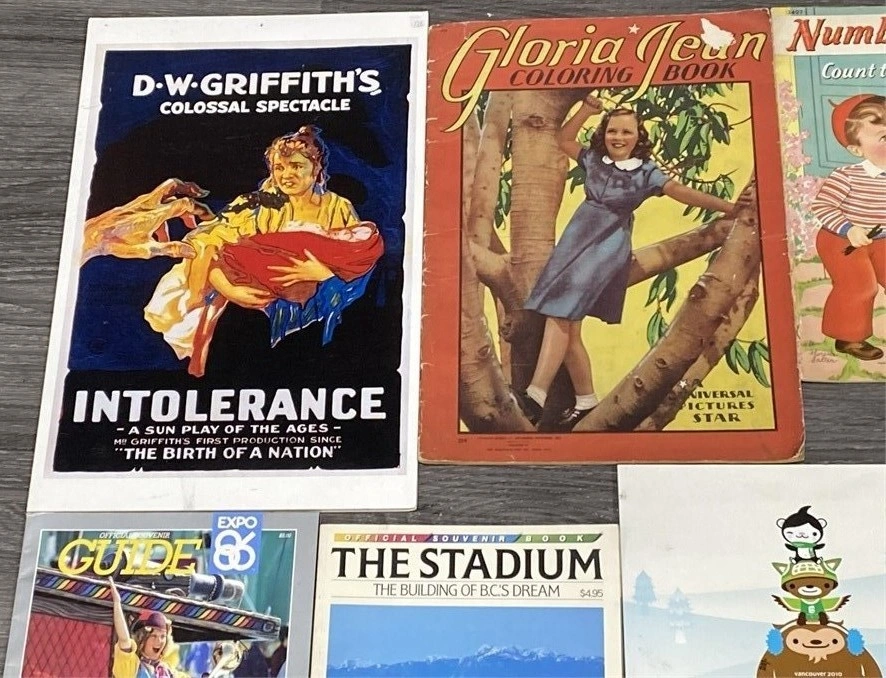 VINTAGE VANCOUVER EPHEMERA LOT – 1914 NEWSPAPERS & RARE BOOKLETS E-Transfers Accepted Pick Up Anytime A remarkable mixed lot of historic Vancouver and entertainment ephemera spanning nearly a century. Perfect for collectors, historians, or resellers seeking unique, locally significant, and rare paper collectibles. Quantity Available: 1 Lot Breakdown by Item: (4) The Vancouver Sun “Anniversary Number” newspapers – April 1914 editions (fragile, over 100 years old) – $120 CAD (set of 4) Expo ’86 Official Souvenir Guide – $20 CAD The Stadium: The Building of BC’s Dream (BC Place souvenir book) – $25 CAD Miga, Quatchi, and Sumi (2010 Vancouver Olympics mascots book) – $15 CAD Intolerance – D.W. Griffith’s “Colossal Spectacle” program/booklet – $25 CAD Gloria Jean Coloring Book (Universal Pictures star) – $20 CAD Number Rhyme children’s booklet – $10 CAD Sandman Stories vintage children’s booklet – $10 CAD Craft Brews: The Right Glass for the Right Beer – $10 CAD The Soviet Transport System Cold War-era booklet – $10 CAD Blue Jays/Exhibition Stadium insert + misc. ephemera – $5 CAD Total Individual Value: $270 CAD Offered as One Complete Collector Lot: $195 CAD Why It’s Special: Over a century of Vancouver history represented in original 1914 newspapers. Rare vintage advertising, entertainment, and souvenir ephemera. Ideal for collectors, archivists, decorators, or as resale stock for antique shows. expo 86 memorabilia, vancouver sun newspaper, 1914 ephemera, bc history, olympics mascots, gloria jean, intolerance movie program, vintage children’s books, beer guide, soviet collectibles, antique paper lot, canadian history, collector ephemera Price: $195 CAD