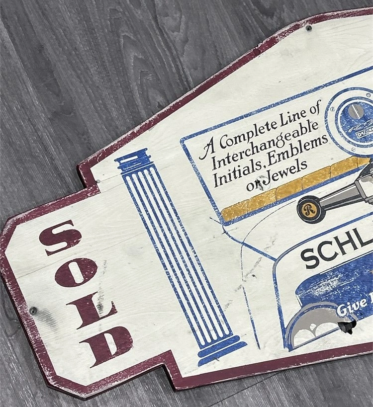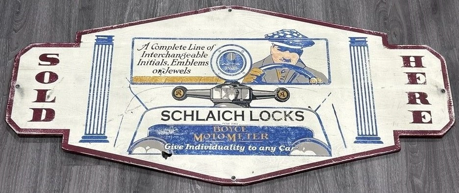 Large Vintage Wooden Schlaich Locks Car Dealership Sign – 46”x21” E-Transfers Accepted Pick Up Anytime A striking vintage-style wooden dealership sign featuring Schlaich Locks for the Boyce MotoMeter. Painted design shows a period driver and bold “SOLD HERE” lettering on both sides. Size: approx. 46” wide x 21” tall Heavy wood construction with cutout shape Strong vintage display appeal – perfect for man cave, garage décor, or auto memorabilia collection Features the Boyce MotoMeter reference, a classic accessory tied to 1920s automobiles Solid condition with light wear adding character This is a collector’s piece with excellent wall presence and historic automotive charm. Schlaich & Boyce MotoMeter memorabilia is highly sought after. Authentic originals fetch hundreds more – this large painted wood version gives the same commanding look at a fraction of the price. antique auto sign vintage dealership Boyce MotoMeter Schlaich Locks man cave garage décor automobilia car collector Price: $195 CAD