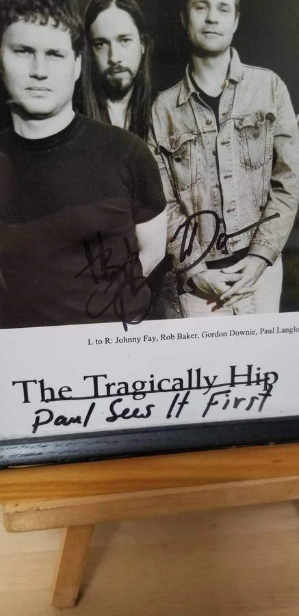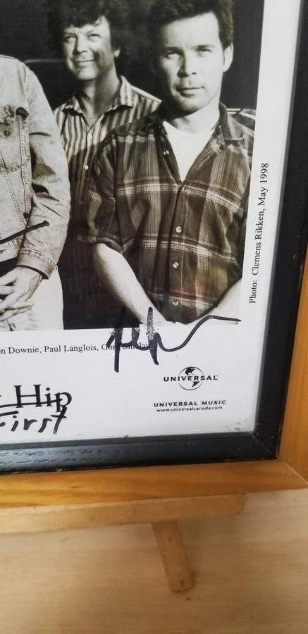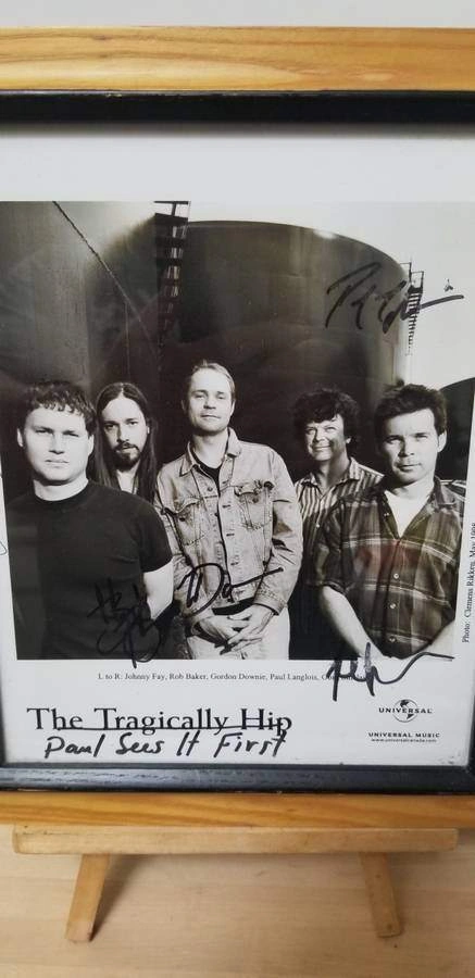 The Tragically Hip FULL Band Signed 1998 Photo w/ Gord Downie E-Transfers Accepted Pick Up Anytime An extraordinary piece of Canadian rock history — a 1998 Universal Music Canada promotional press photo of The Tragically Hip, fully signed by all five original members: Gord Downie Rob Baker Johnny Fay Paul Langlois Gord Sinclair 📸 Photo credit: Clemens Rikken, May 1998 🖊 Authentic signatures in pen across the image, including the late Gord Downie. 🖼 Professionally framed, approx. 9" x 11". ✍️ Unique handwritten inscription: “Paul Sees It First” — making this a one-of-a-kind collector’s piece. Identification & Rarity Official Universal Music Canada press photo, not a reproduction. Full band signed memorabilia with Downie’s autograph is increasingly scarce and highly sought after by collectors. Condition is excellent; frame and glass intact. A true centerpiece for any Tragically Hip or Canadian music collection. tragically hip autographs signed gord downie rob baker johnny fay paul langlois gord sinclair canadian rock memorabilia framed photo universal music press photo 1998 clemens rikken $1200 CAD